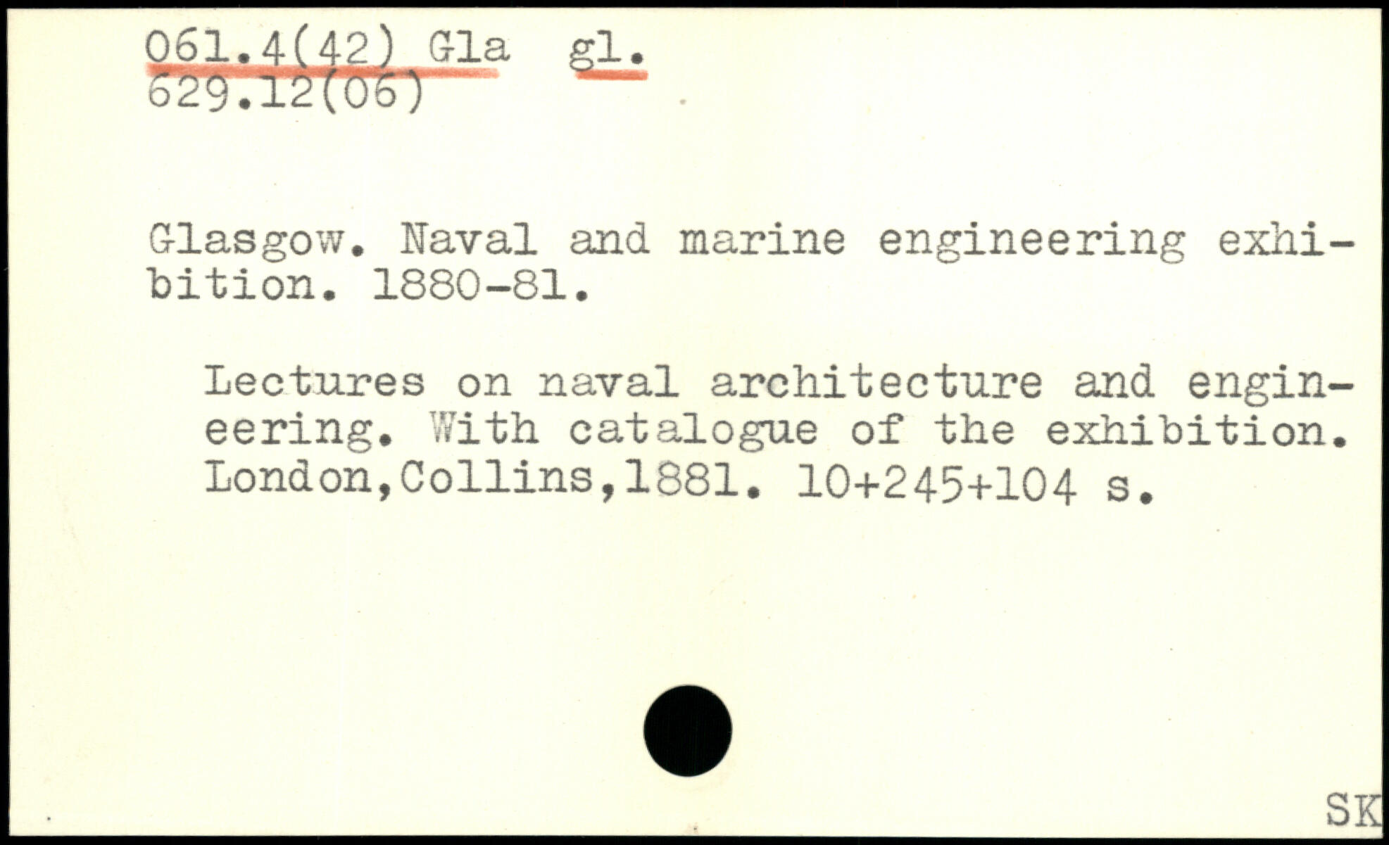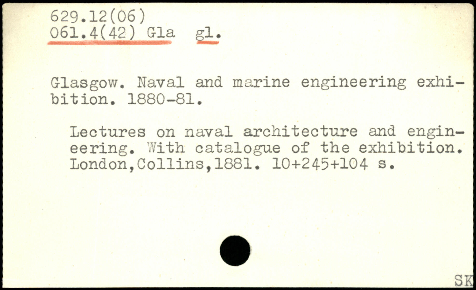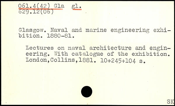 G-lasgow. Naval and marine engineering exhibition. 1880-81. Lectures on naval architecture and engineering. With catalogue of the exhibition.