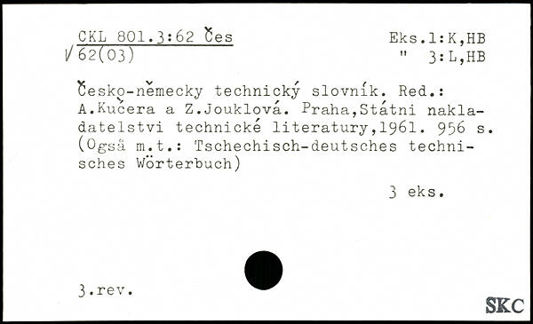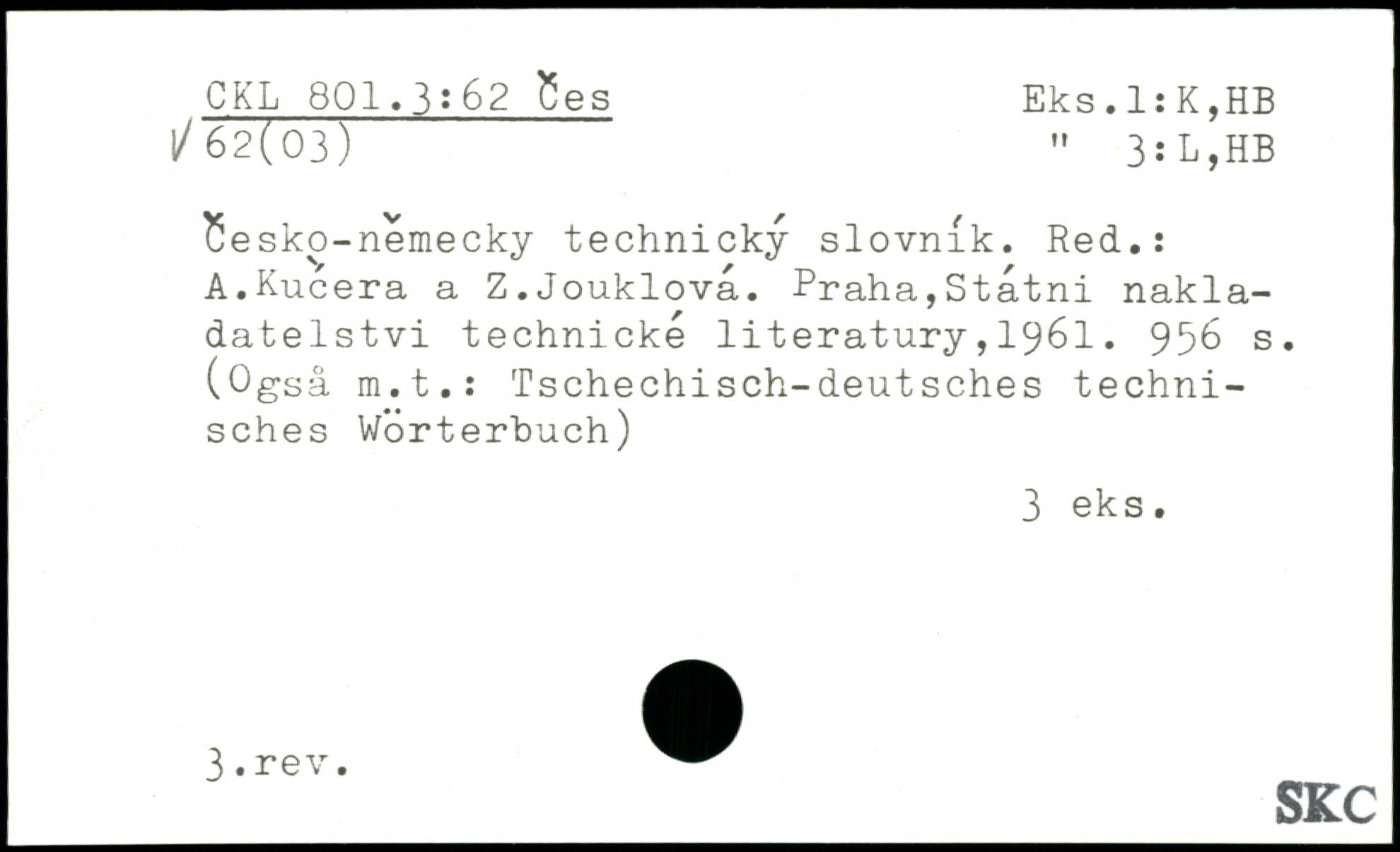 £esko-nemecky technicky slovnik. Red.: A.Kucera a Z.Jouklova.
