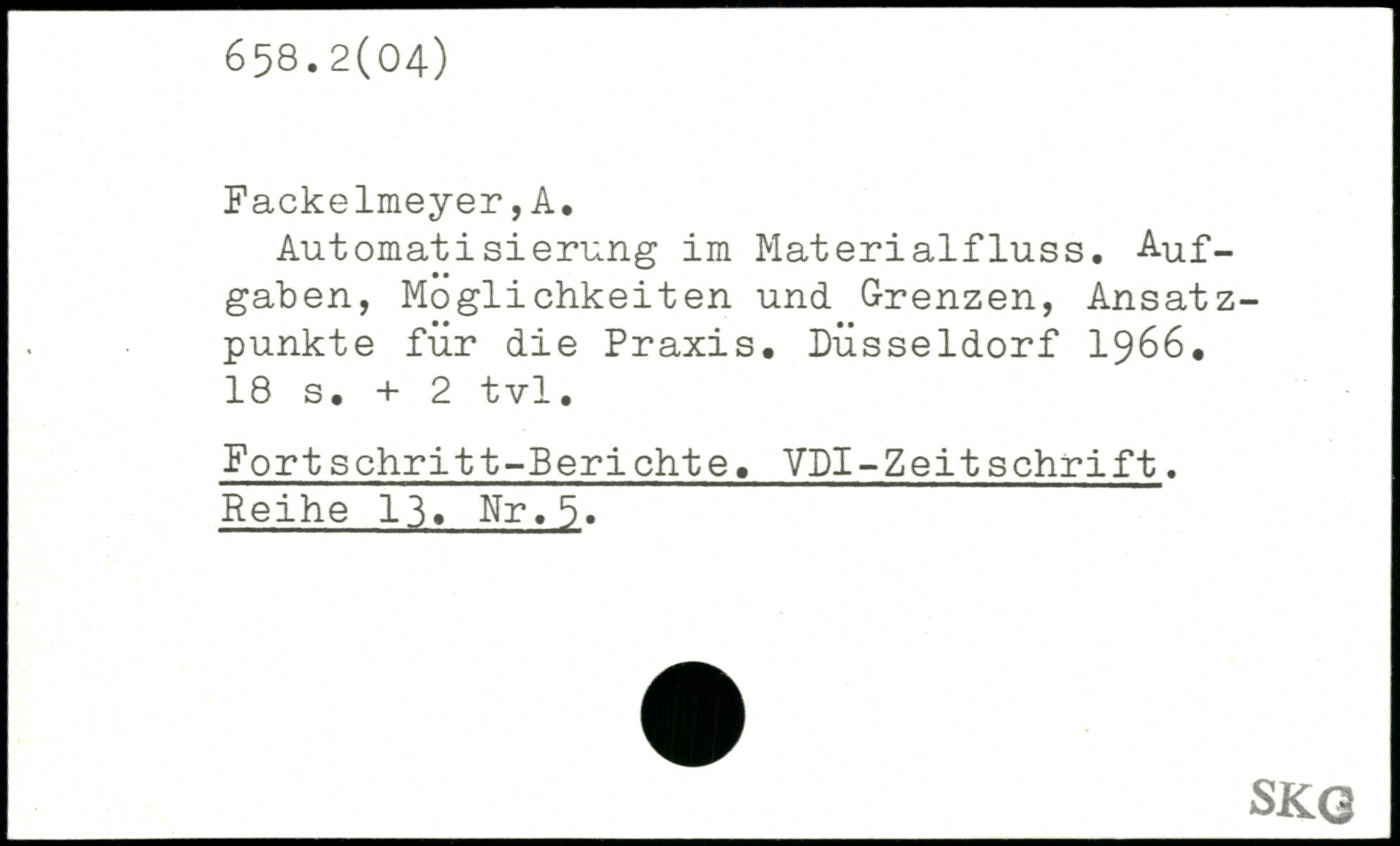 Automatisierung im Materialfluss. Aufgaben, Möglichkeiten und Grenzen, Ansatzpunkte für die Praxis. Düsseldorf 1966.