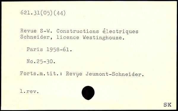 Revue S-W. Constructions électriques Schneider, licence Westinghouse.