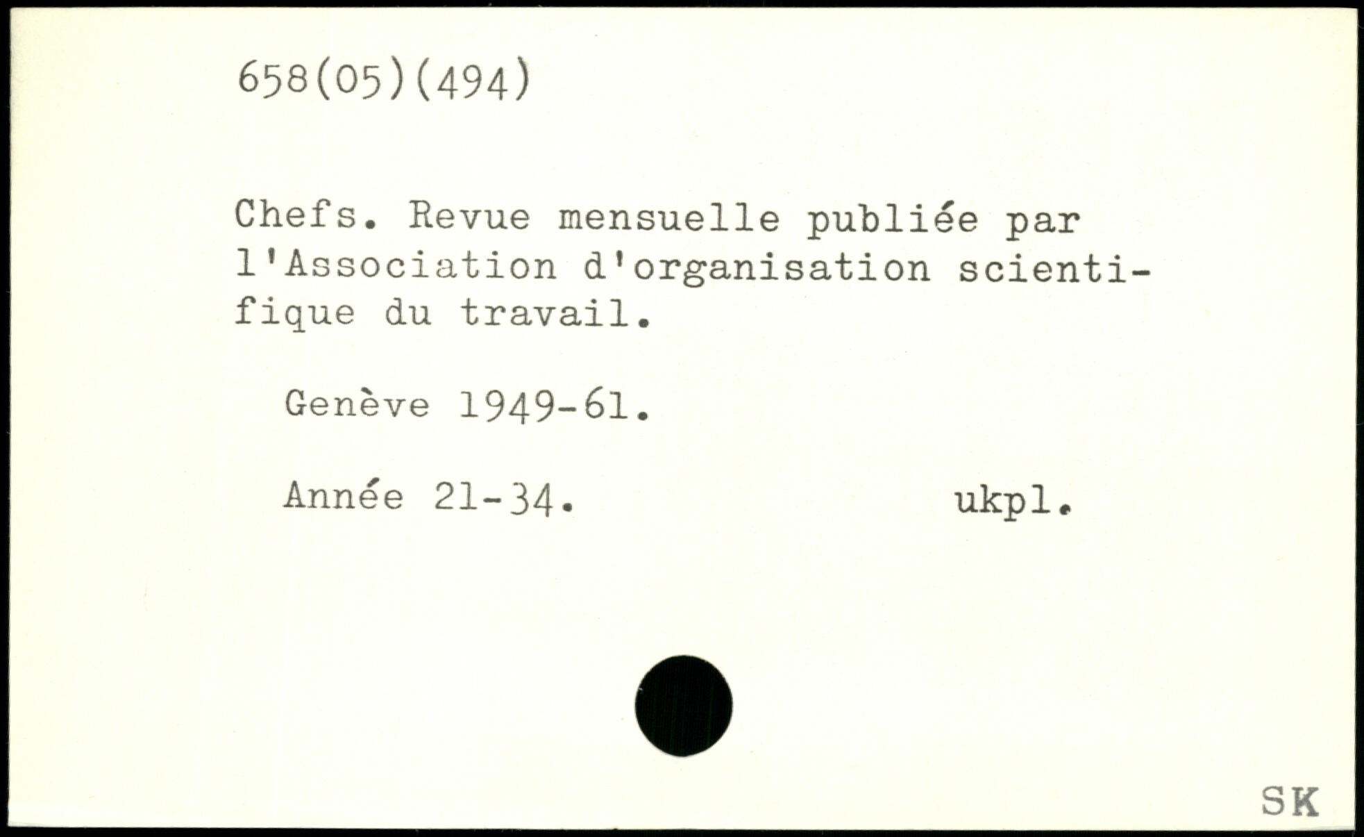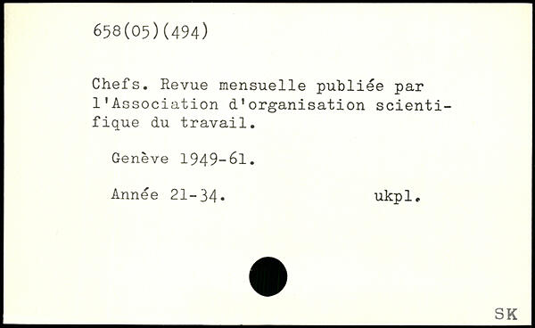 Chefs. Revue mensuelle publiée par l'Association d’organisation scientifique du travail. Genève 1949-61. Année 21-34. ukpl.