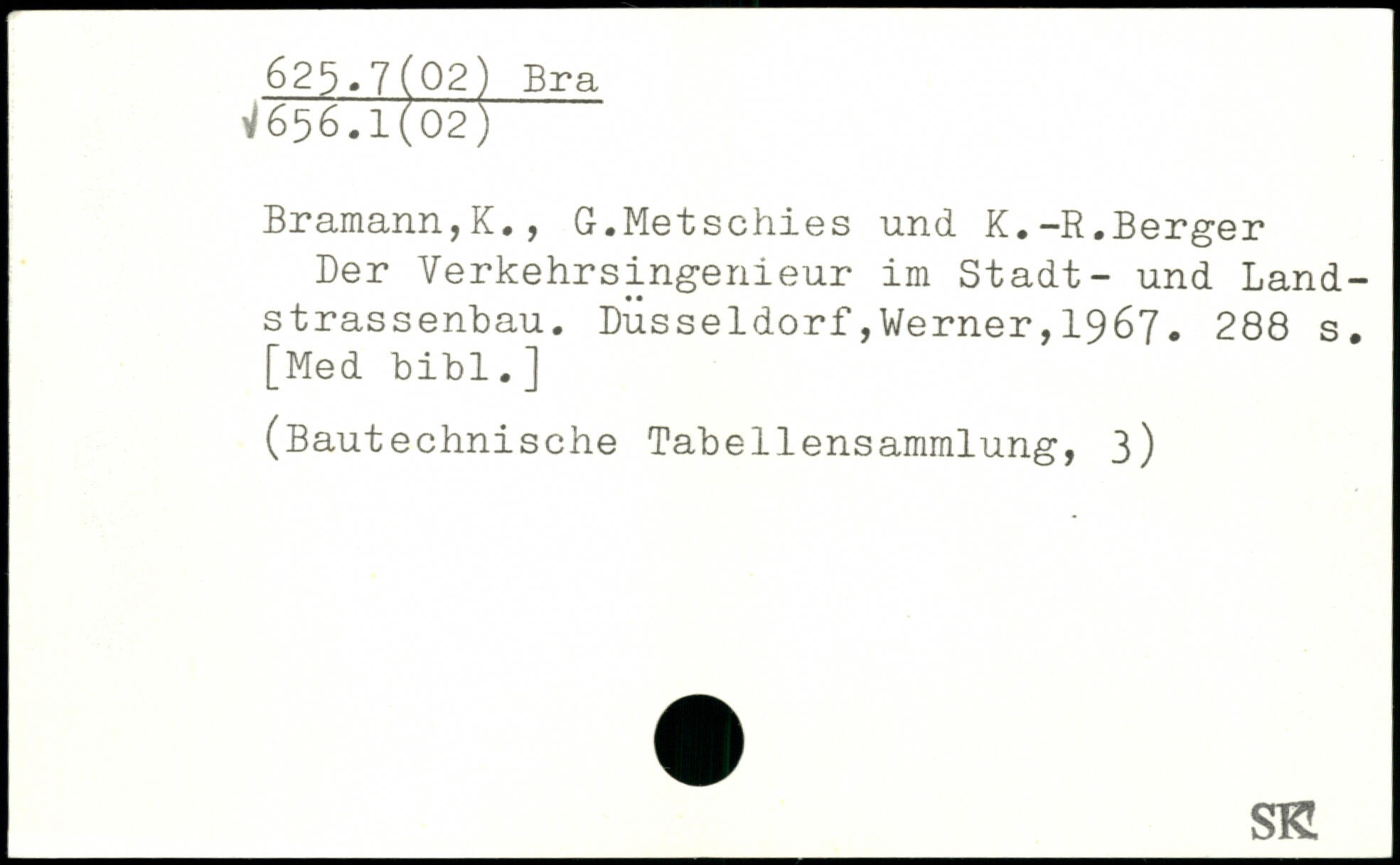 Bramann,K., G.Metschies und K.-R.Berger Der Verkehrsingenieur im Stadt- und Land-strassenbau.