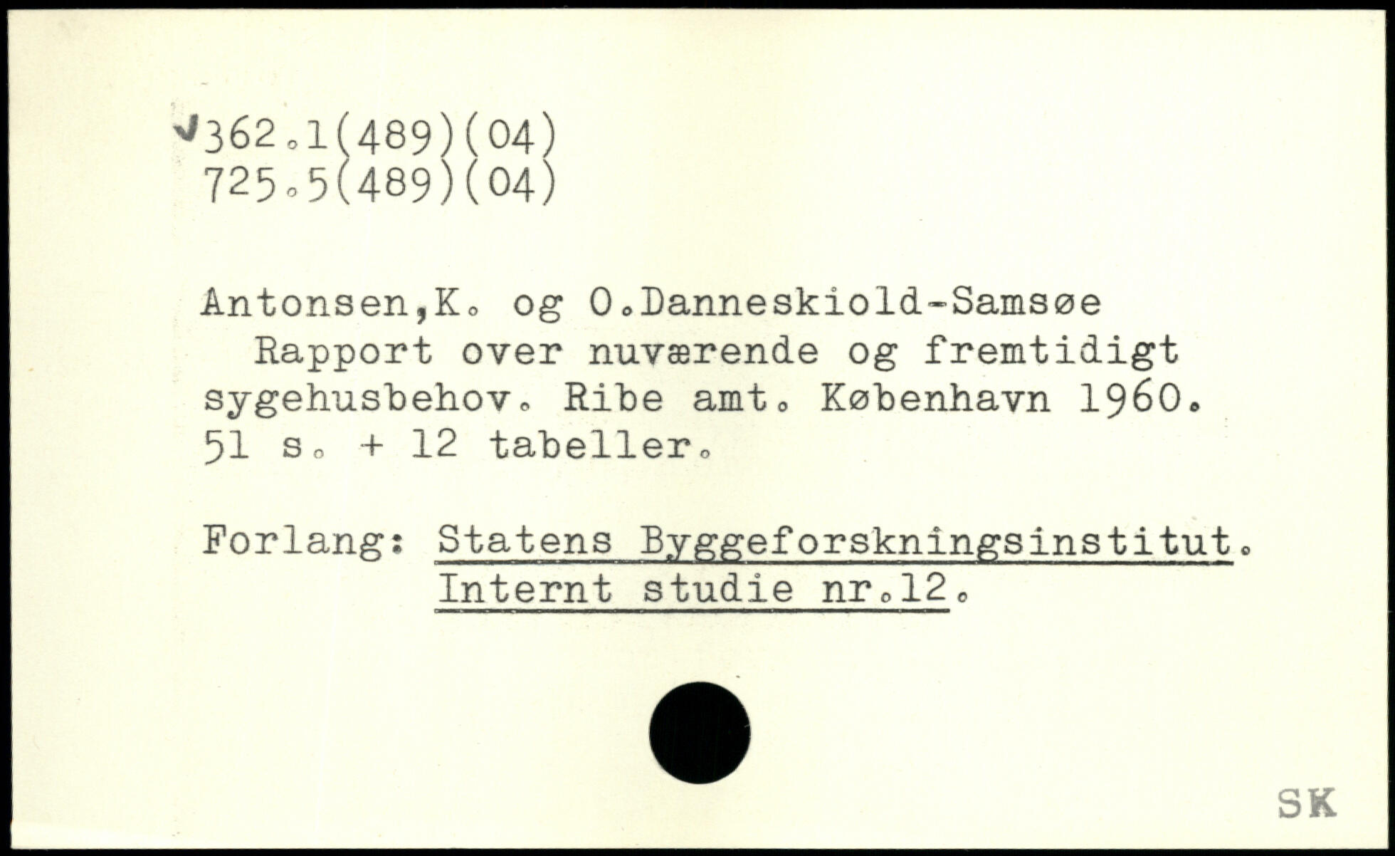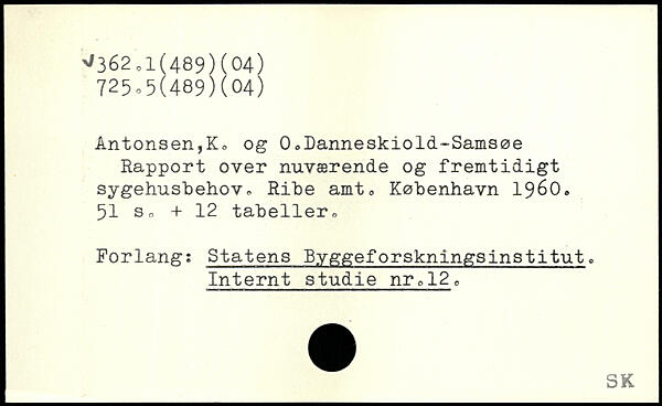 Antonsen,Ko og 0,Danneskiold-Samsøe Rapport over nuværende og fremtidigt sygehus'behov., Ribe amto
