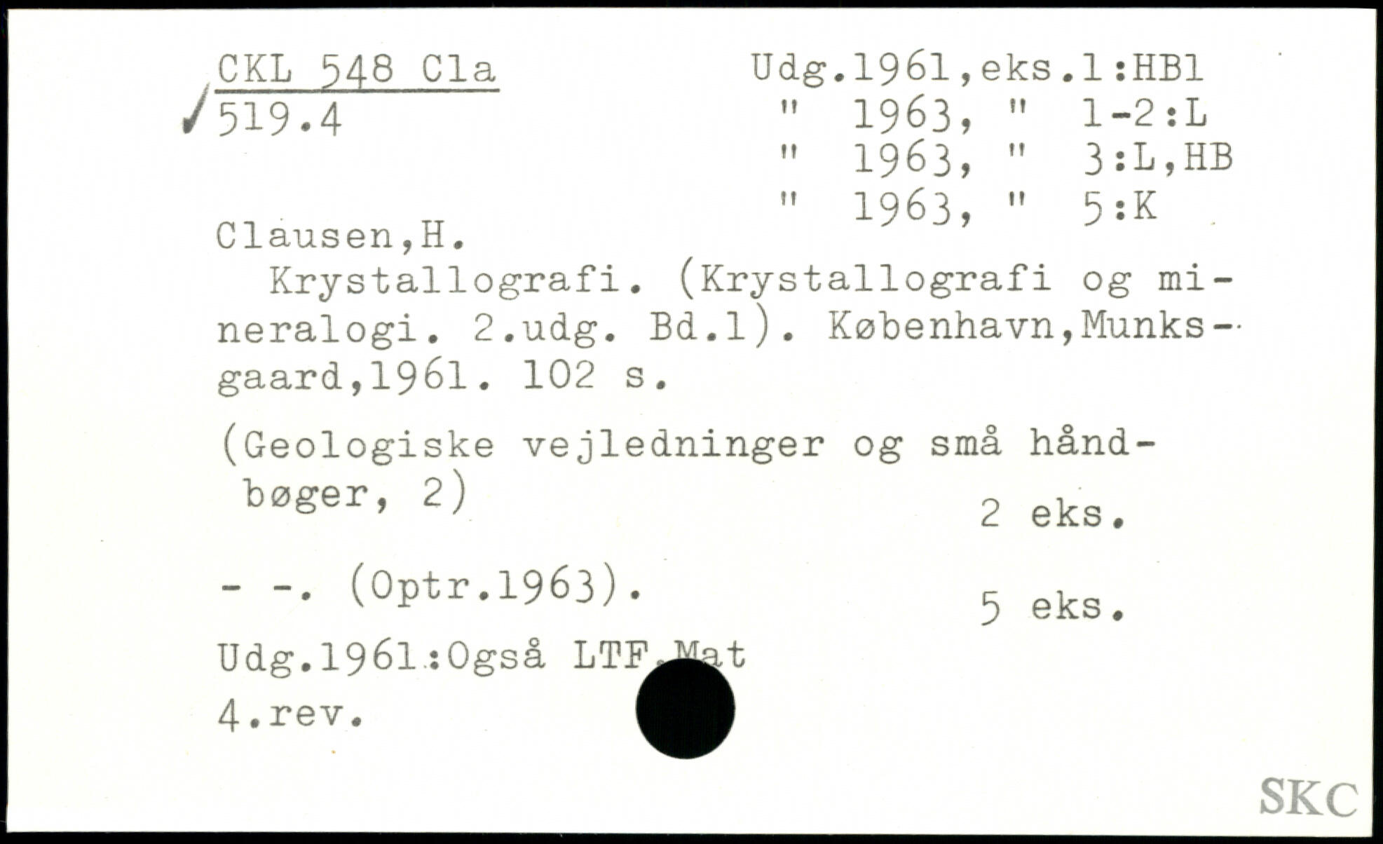 " 1963, " 3:L,HB , " 1963, " 5:K Clausen,H. Krystallografi. (Krystallografi og mineralogi.
