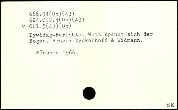 Dywidag-Berichte. Weit spannt sich der Bogen, Hrsg.: Dyckerhoff & Widmann.