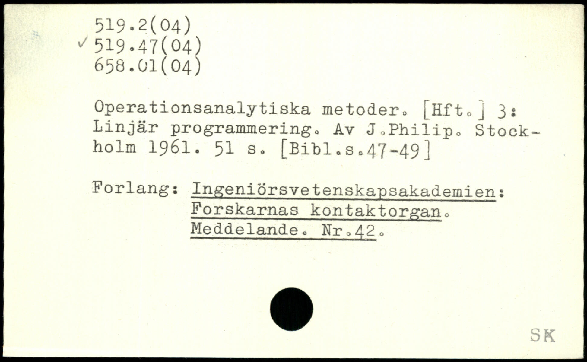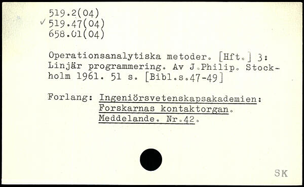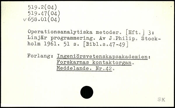 Operationsanalytiska metoder. [Hfto] 3: Linjär programmering. Av J.Philip.