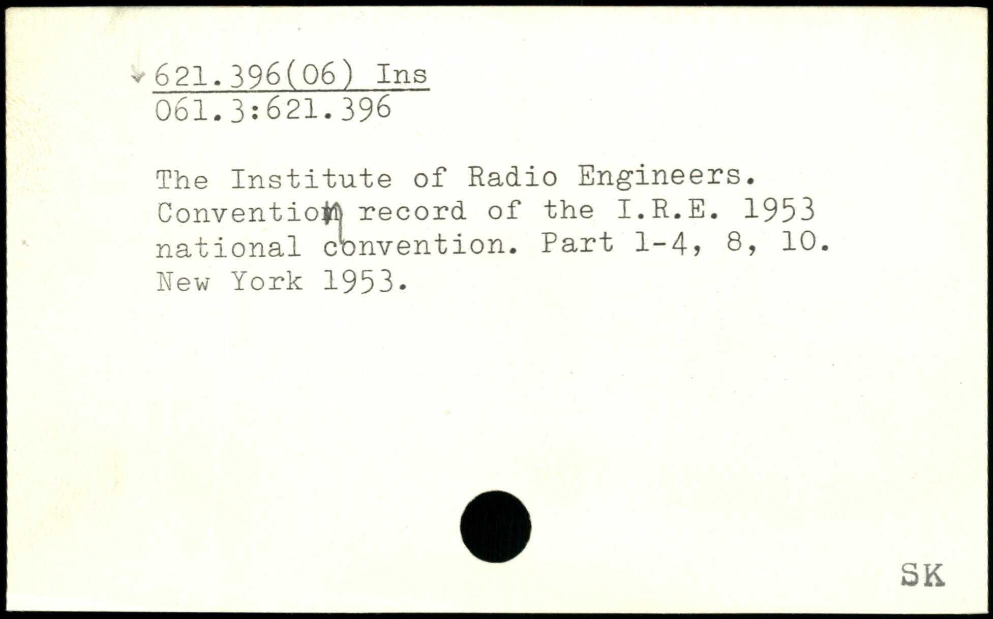 The Institute of Radio Engineers. Convention. record of the I.R.E. 1953 national convention. Part 1-4, 10. hew York 1953.