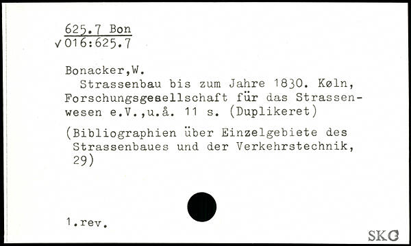 Strassenbau bis zum Jahre 1830. Køln, Forschungsgeaellschaft für das Strassen-wesen e.V.,u.å.