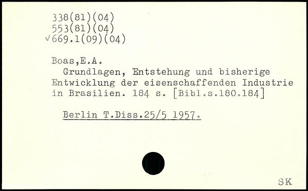 Grundlagen, Entstehung und bisherige Entwicklung der eisenschaffenden Industrie in Brasilien. I
