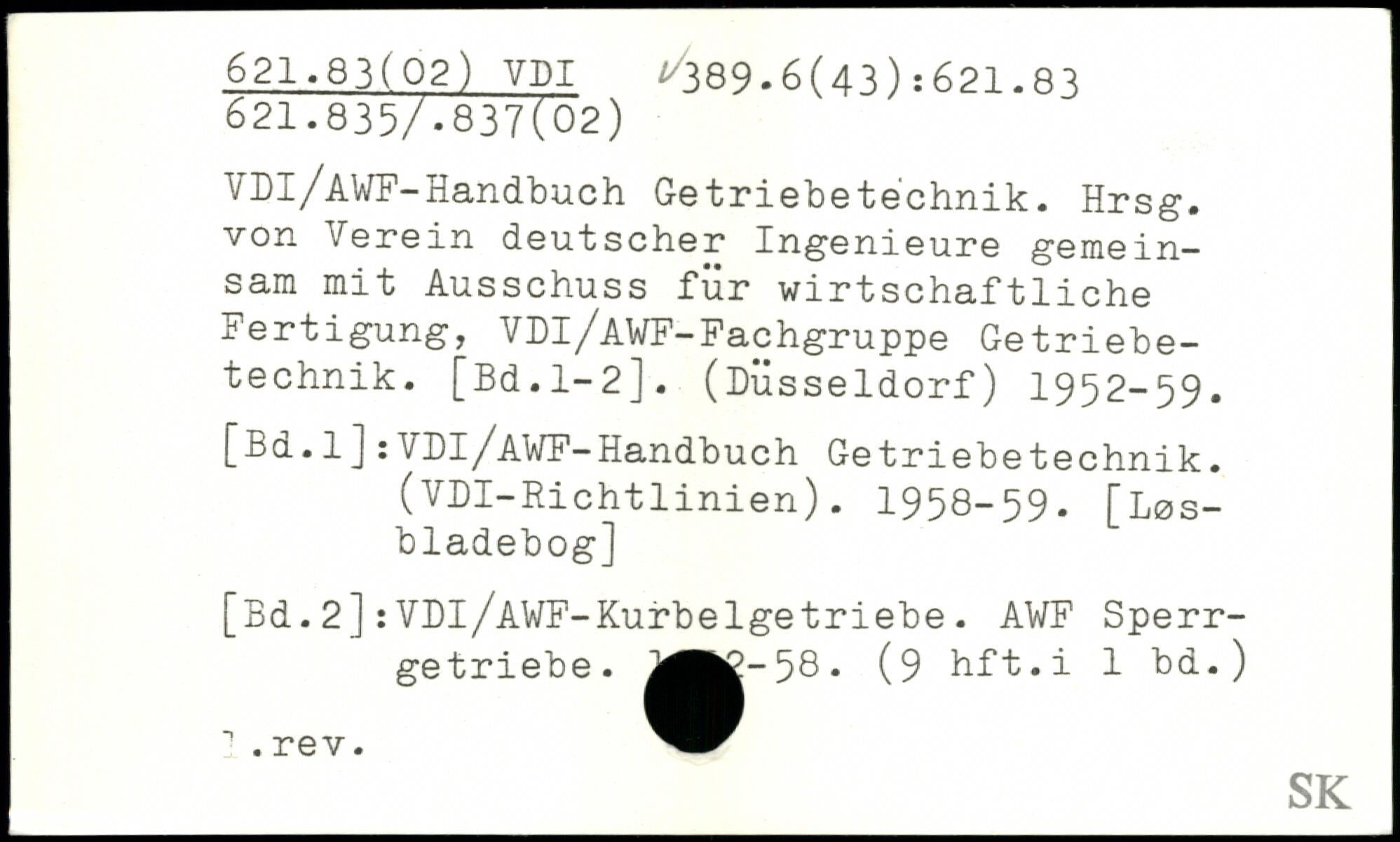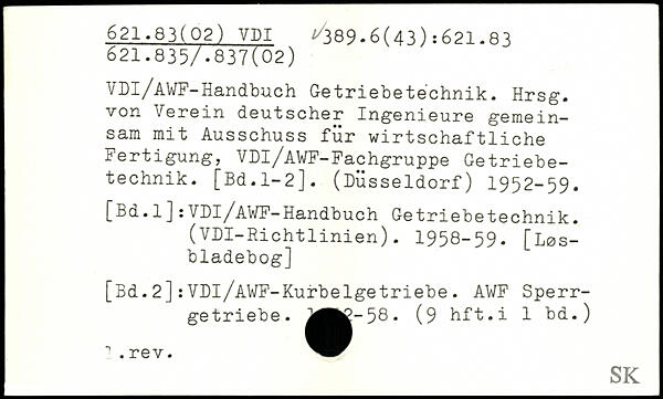 VDl/AWF-Handbuch Getriebetéchnik. Hrsg, von Verein deutscher Ingenieure gemeinsam mit Ausschuss für wirtschaftliche Fertigung, VLl/AWF-Fachgruppe Getriebetechnik. [