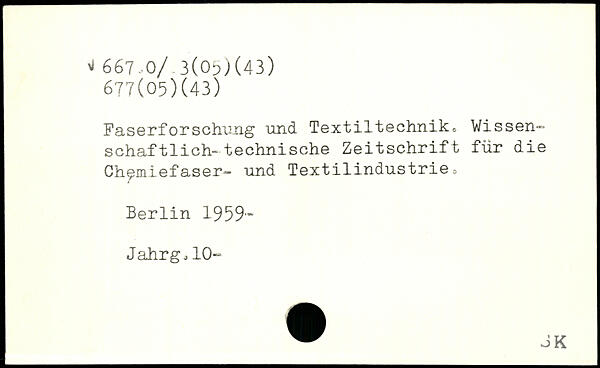 Faserf orschimg und Textiltechnikc Wissen-, schaftlieh-technische Zeitschrift für die Chemiefaser- und Textilindustrie