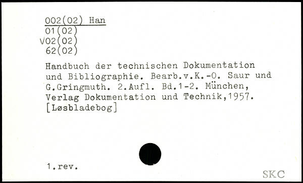 Handbuch der technischen Dokumentation und Bibliographie. Bearb.v.K.-0. Saur und G.Gringmuth.