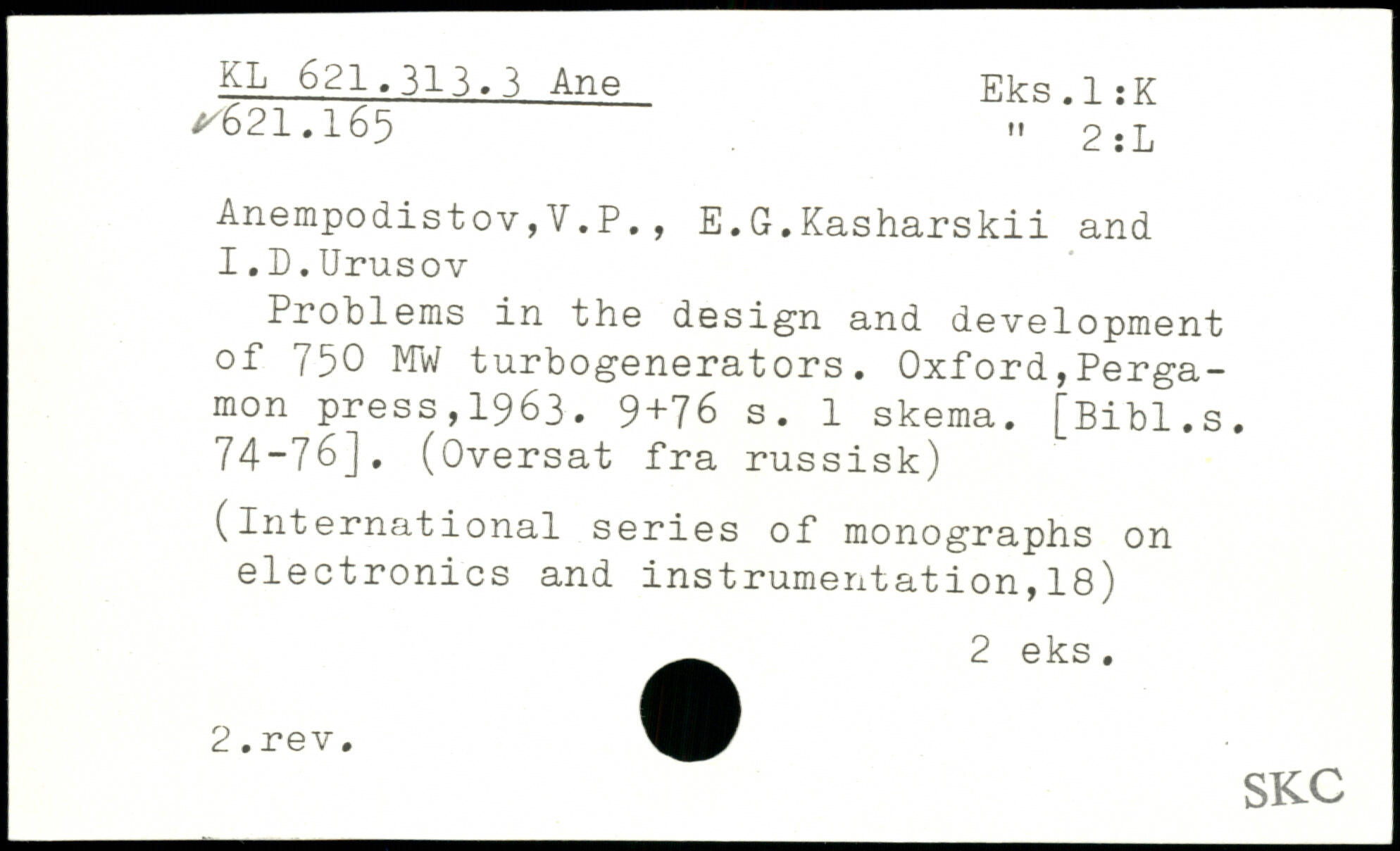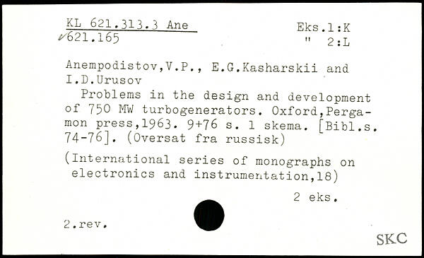 Anempodistov,V.P., E.G.Kasharskii and 1. D.Urusov Problems in the design and development of 75O MW turbogenerators.