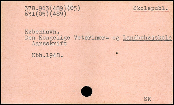 Den Kongelige Veterinær- og Landbohø ,j sko le Aarsskrift Kbh.1948.