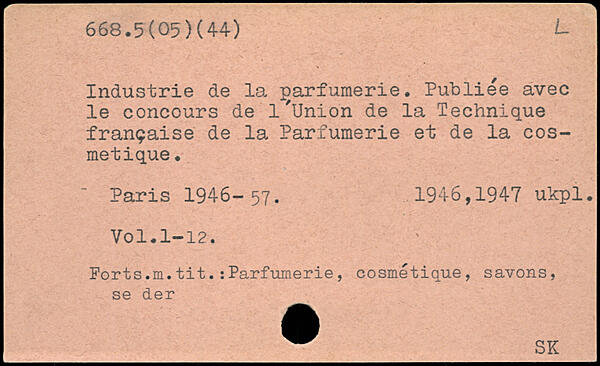 Industrie de la parfumerie. Publiée avec le concours de l'Union de la Technique française de la Parfumerie et de la cosmétique.