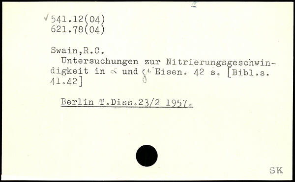 Untersuchungen zur Nitrierungsgeschwindigkeit in cv und c1-'Eisen.