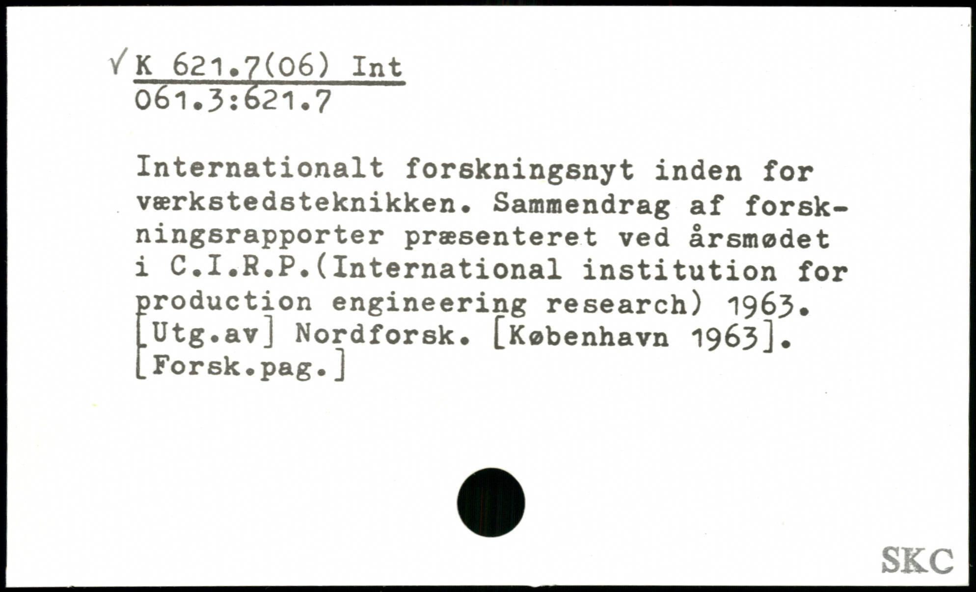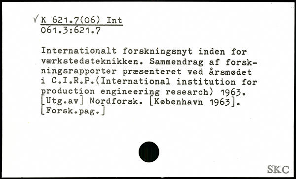 Internationalt forskningsnyt inden for værkstedsteknikken. Sammendrag af forskningsrapporter præsenteret ved årsmødet i C.I.R.P.(International institution for production engineering research) 1963. .Utg.av] Nordforsk.