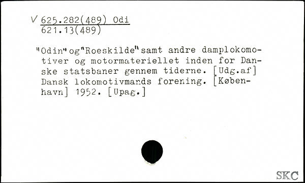 "Odin.. ognRoeskilde''samt andre damplokomotiver og motormateriellet inden for Danske statsbaner gennem tiderne. [Udg.af] Dansk lokomotivmands forening.