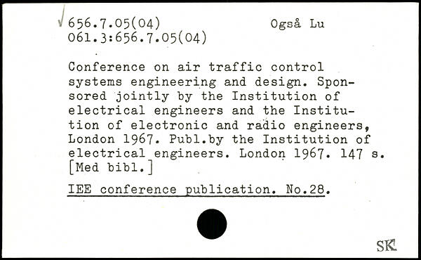 Conference on air traffic control systems engineering and design. Sponsored jointly by the Institution of electrical engineers and the Institution of electronic and radio engineers