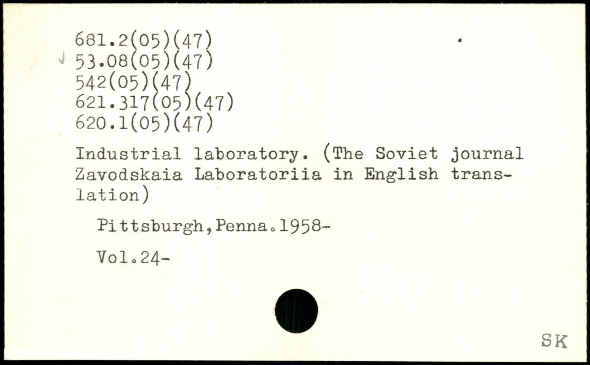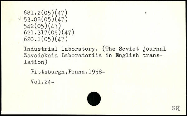 Industrial laboratory. (The Soviet journal Zavodskaia Laboratoriia in English translation) Pitt sburgh,Penna o19 5 8~ Vo1.24-