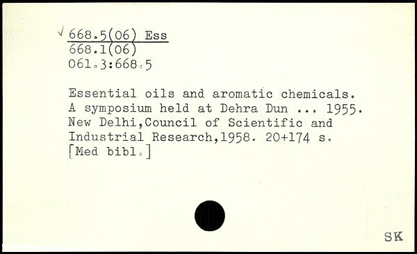 Essential oils and aromatic chemicals. A symposium held at Dehra Dun ... 1955, New Delhi,Council of Scientific and Industrial Research,1958.