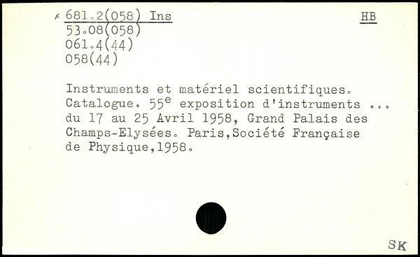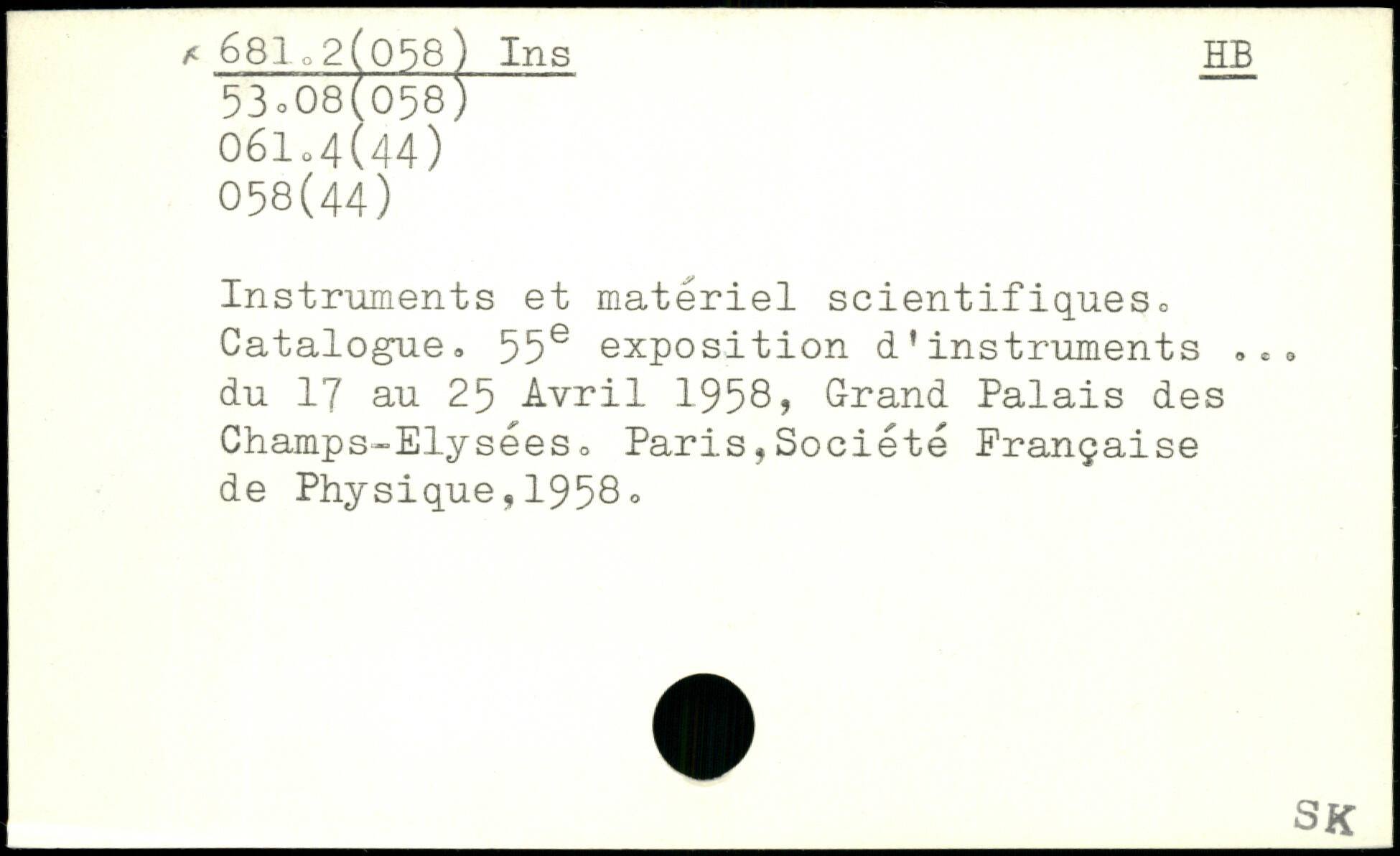 Instruments et matériel scientifiques, Catalogue, 55e exposition d’instruments. , , du 17 au 25 Avril 1958, Grand Palais des Champs-Elysées, Paris,Société Française de Physique,1958o