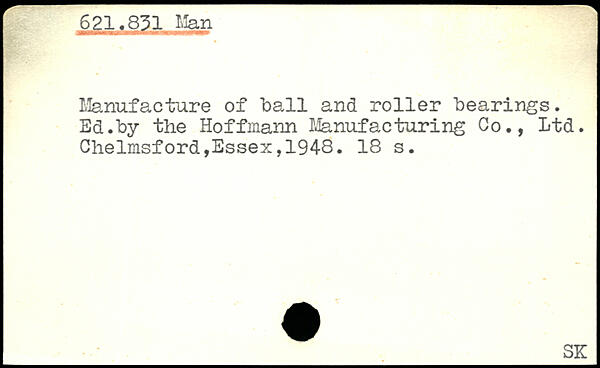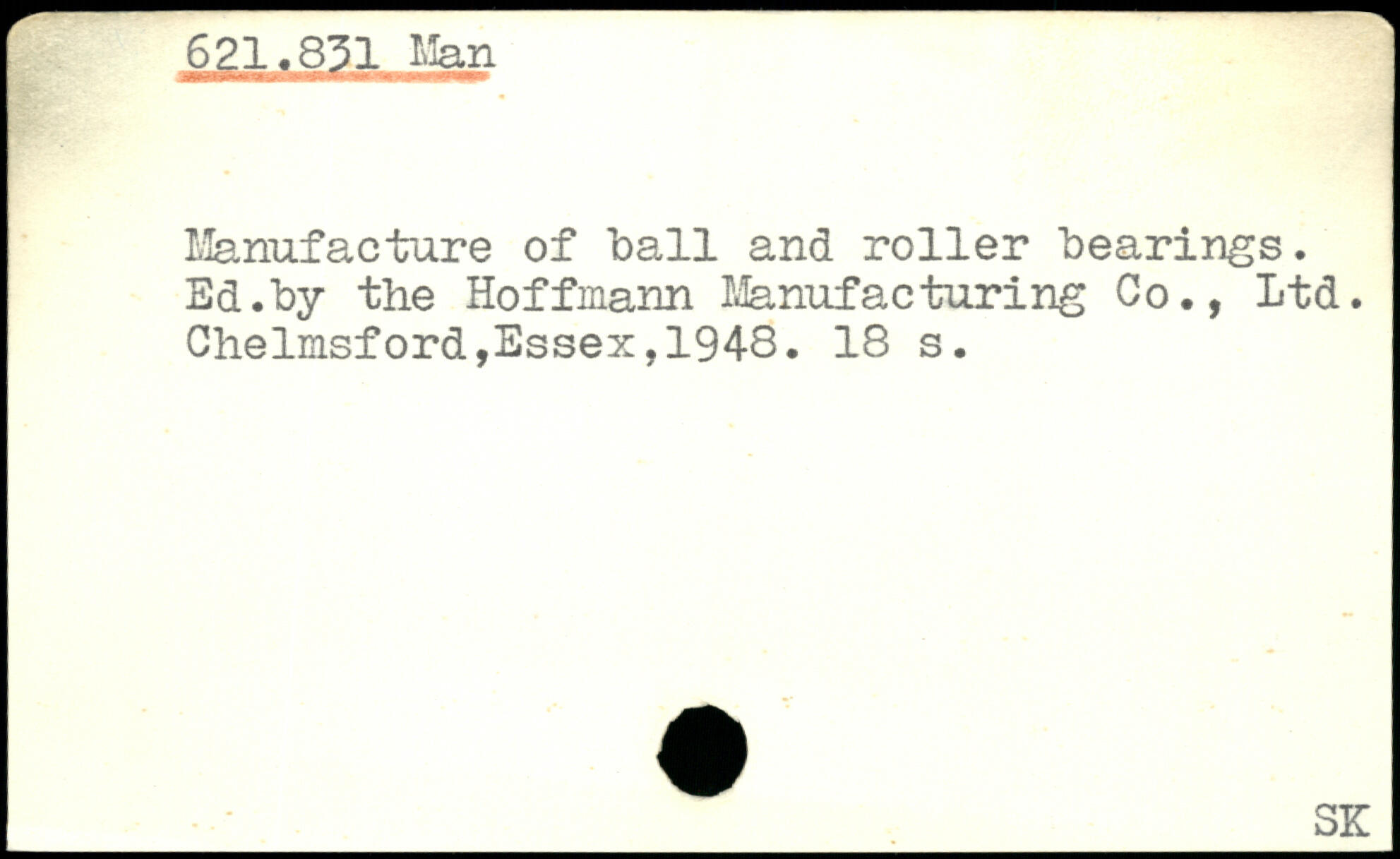 Manufacture of ball and roller bearings. Ed.by the Hoffmann lianufacturing Co., Ltd.