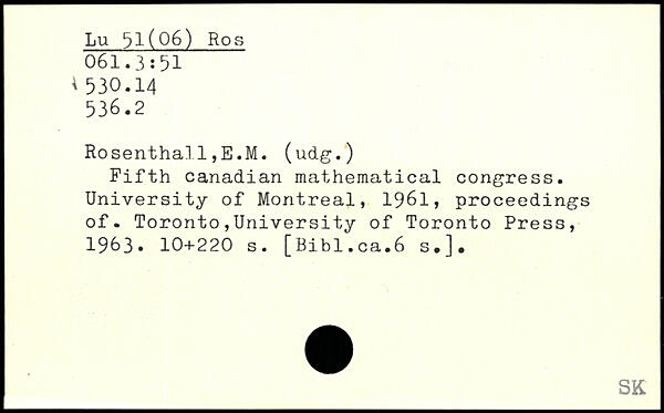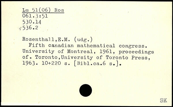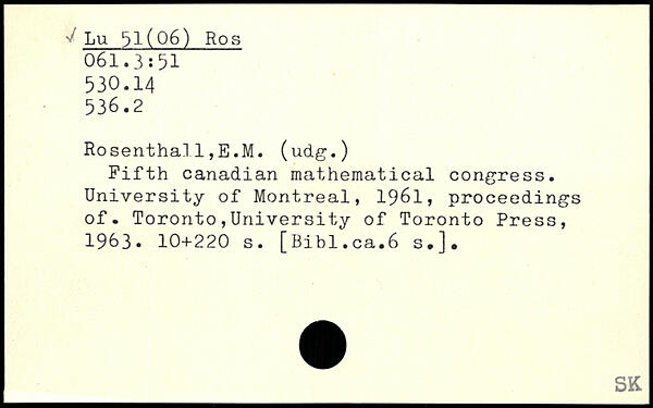 Fifth Canadian mathematical congress. University of Montreal, 1961, proceedings of.