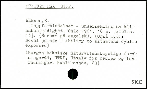 Tappforbindelser - undersøkelse av kli-mabestandighet. Oslo 1964.