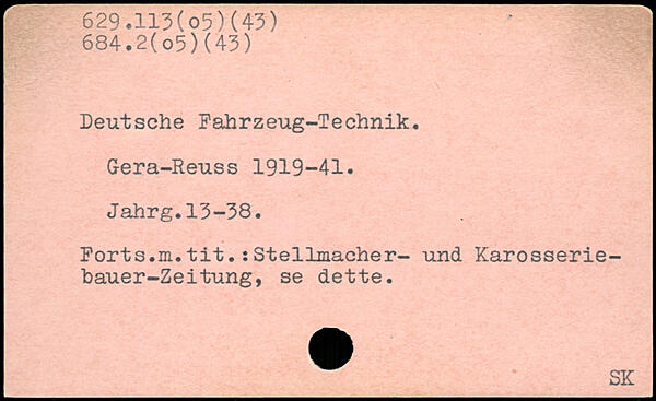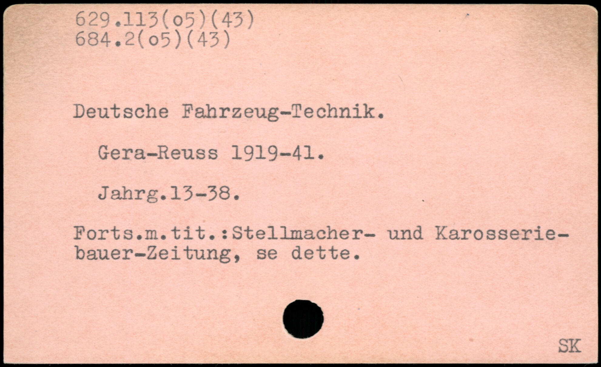 Deutsche Fahrzeug-Technik. G-era-Reuss 1919-41. Jahrg.13-38. Forts.m.tit.:Stellmacher- und Karosseriehauer-Zeitung, se dette.