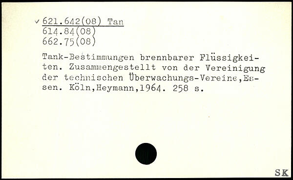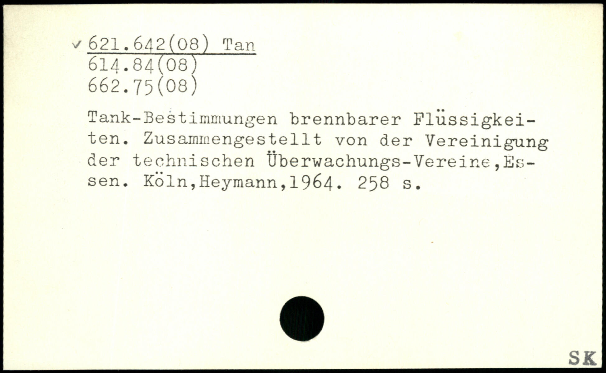 Tank-BeStimmungen brennbarer Flüssigkeiten. Zusammengestellt von der Vereinigung der technischen Überwachungs-Vereine,Essen.