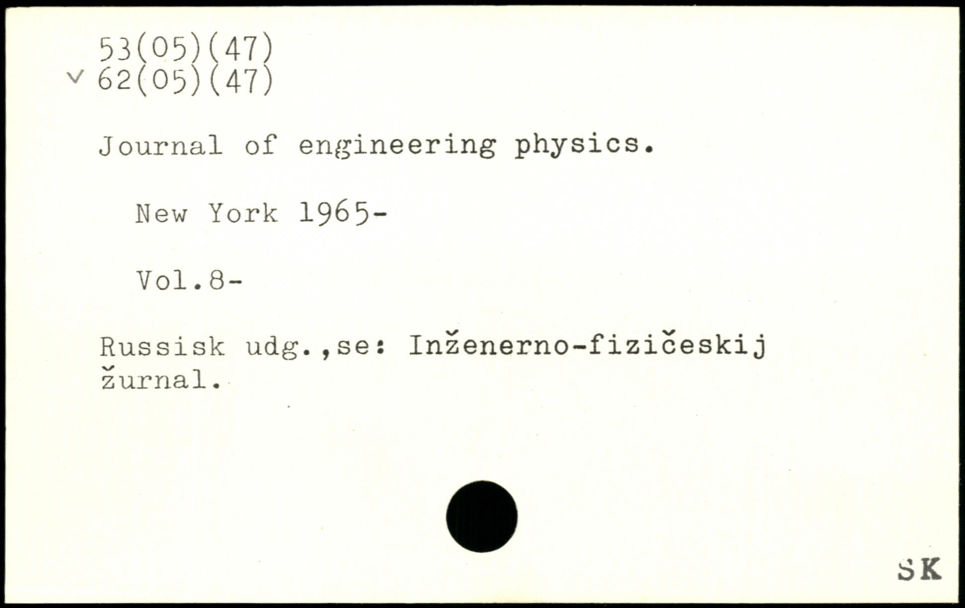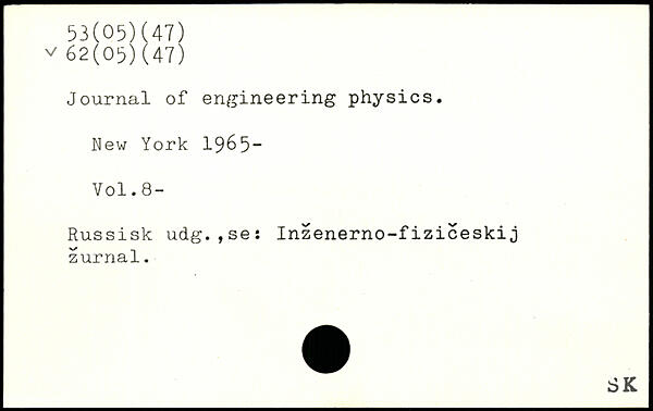 Journal of engineering physics. Mew York 1965-V0I.8- Russisk udg.,se: Inzenerno-fiziceskij zurnal.