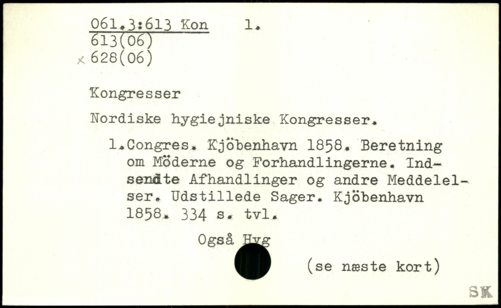 Nordiske hygiejniske Kongresser. l.Congres, Kj obenhavn 1858. Beretning om Moderne og Forhandlingerne. Indsendte Afhandlinger og andre Meddelelser. Udstillede Sager. Kjöbenhavn 1858