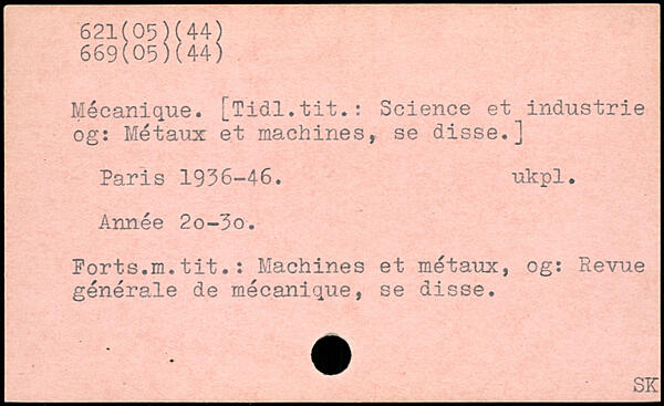 Mécanique. [Ti&l.tit.: Science et industrie og: Métaux et machines, se disse.]