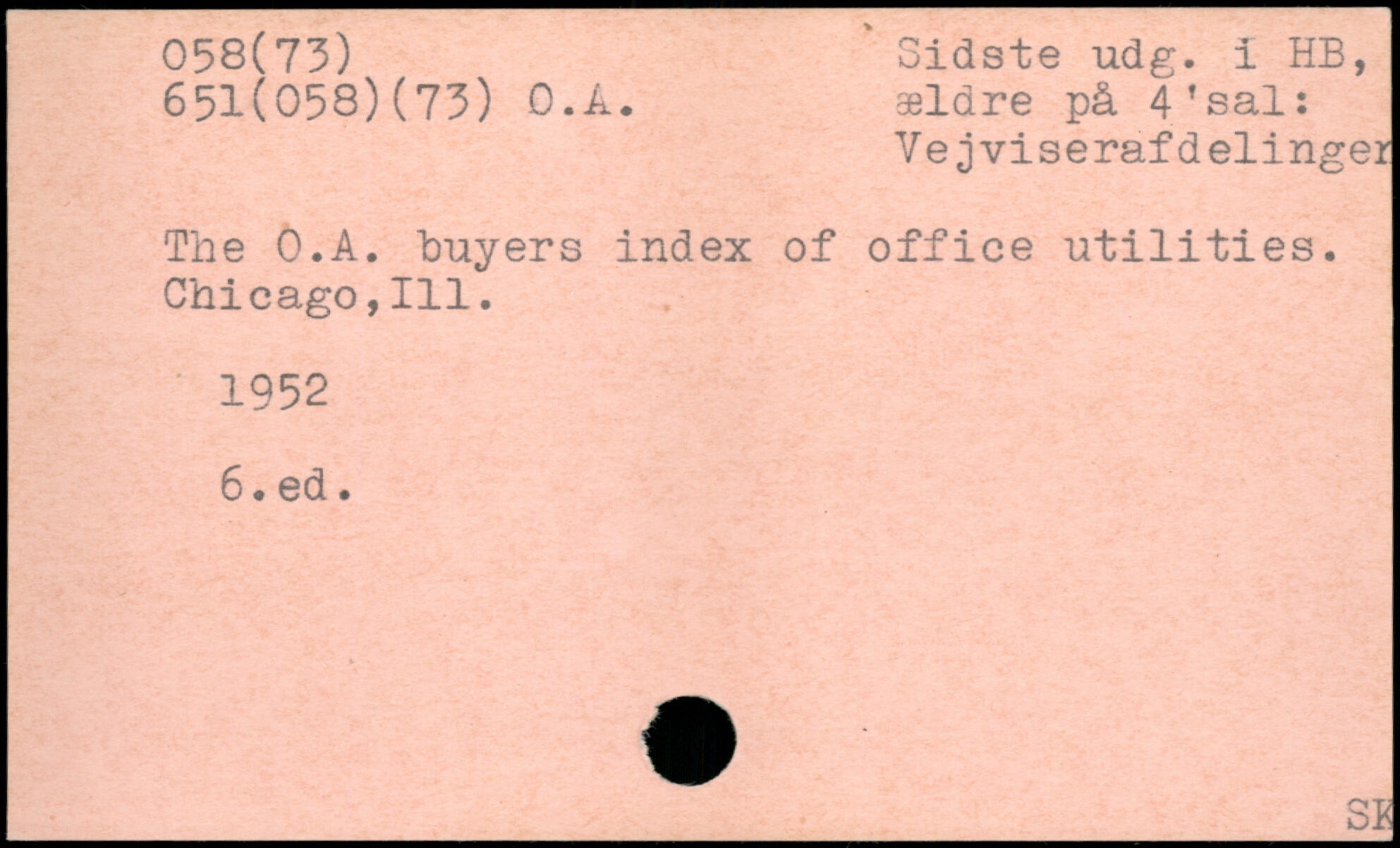 The O.A. tmyers index of Office -Utilities. Chicago,111. 1952