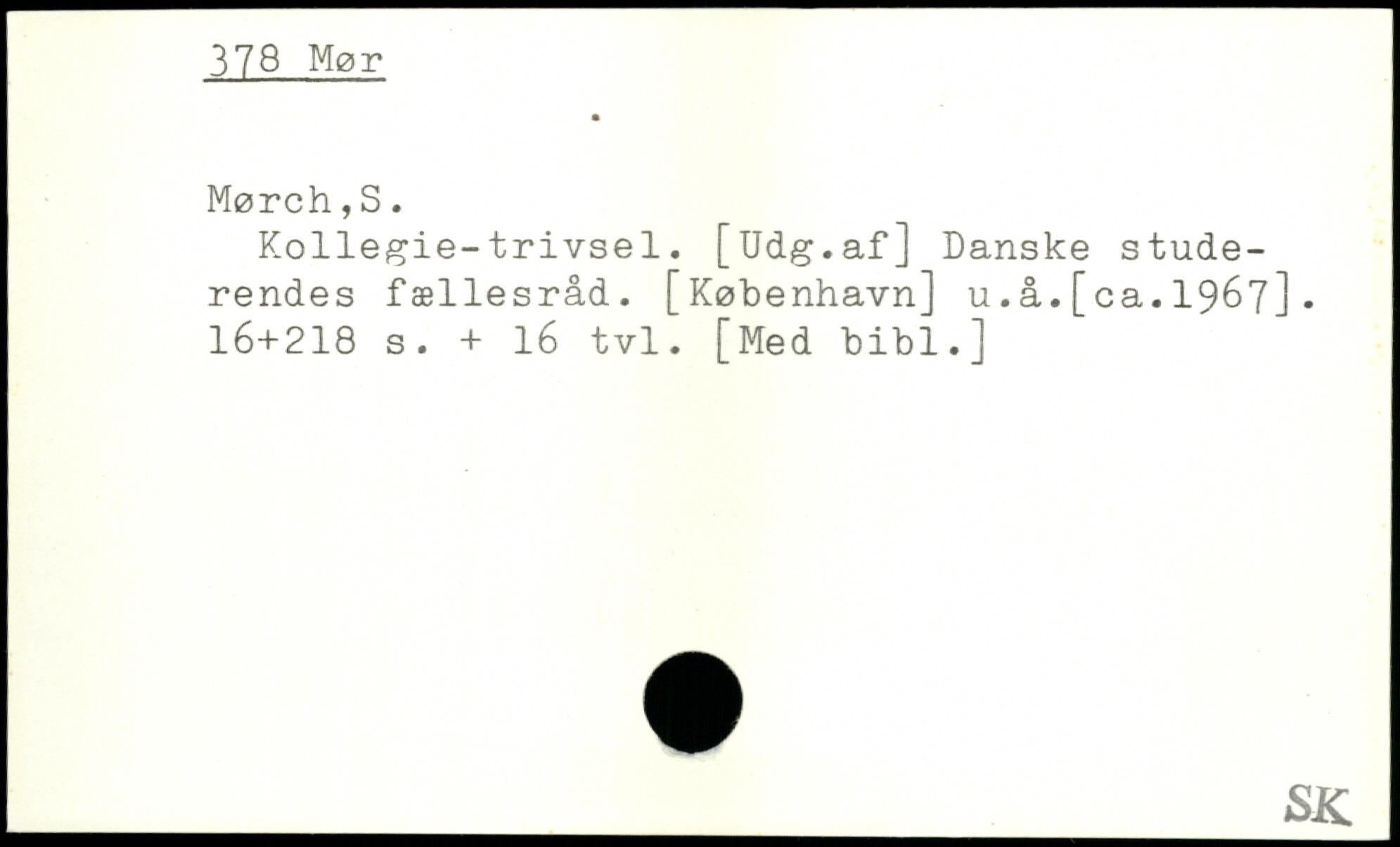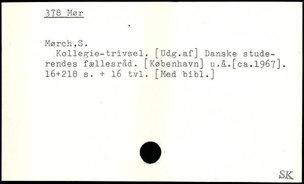 Kollegie-trivsel. [Udg.af] Danske studerendes fællesråd. [København] u.å.[ca. 1967].