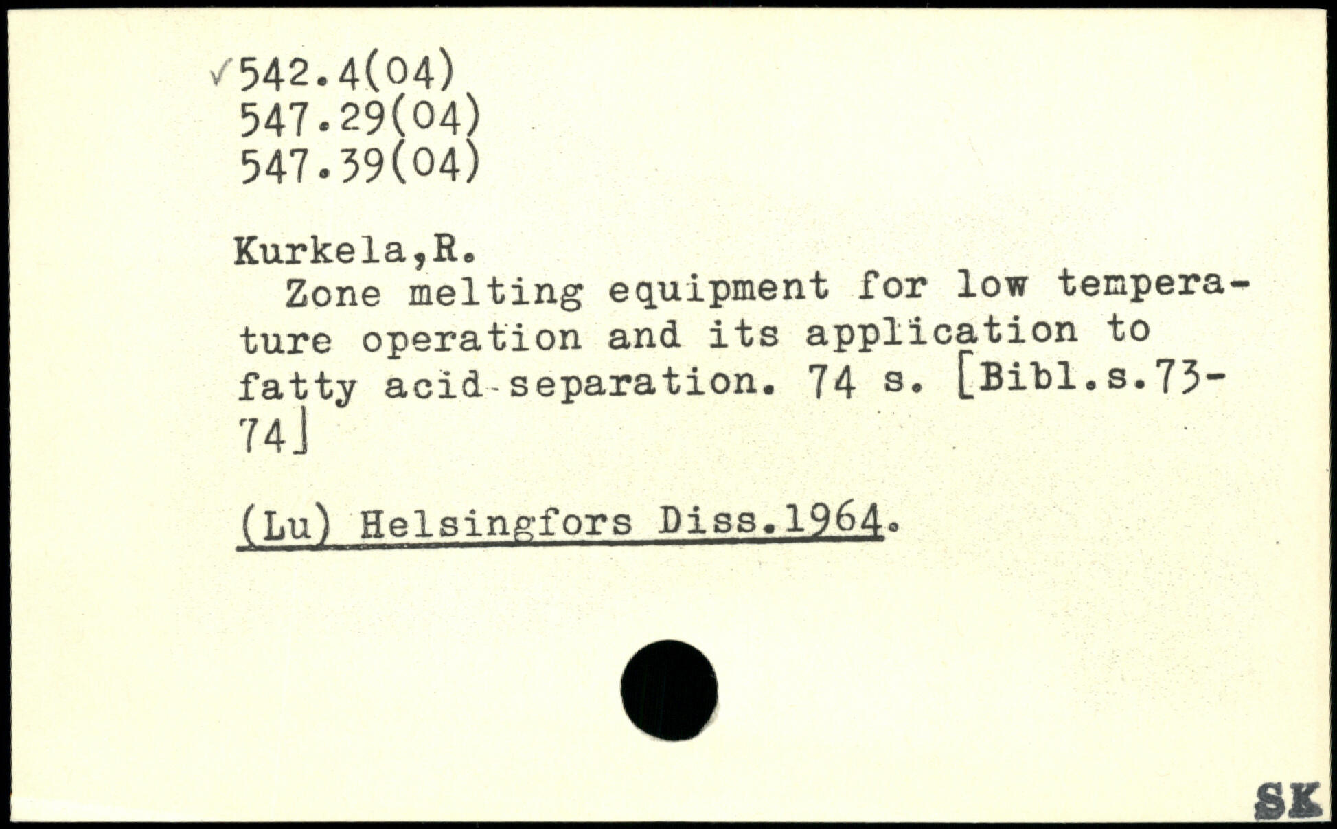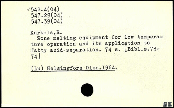 Zone melting equipment for low temperature operation and its application to fatty acid separation.