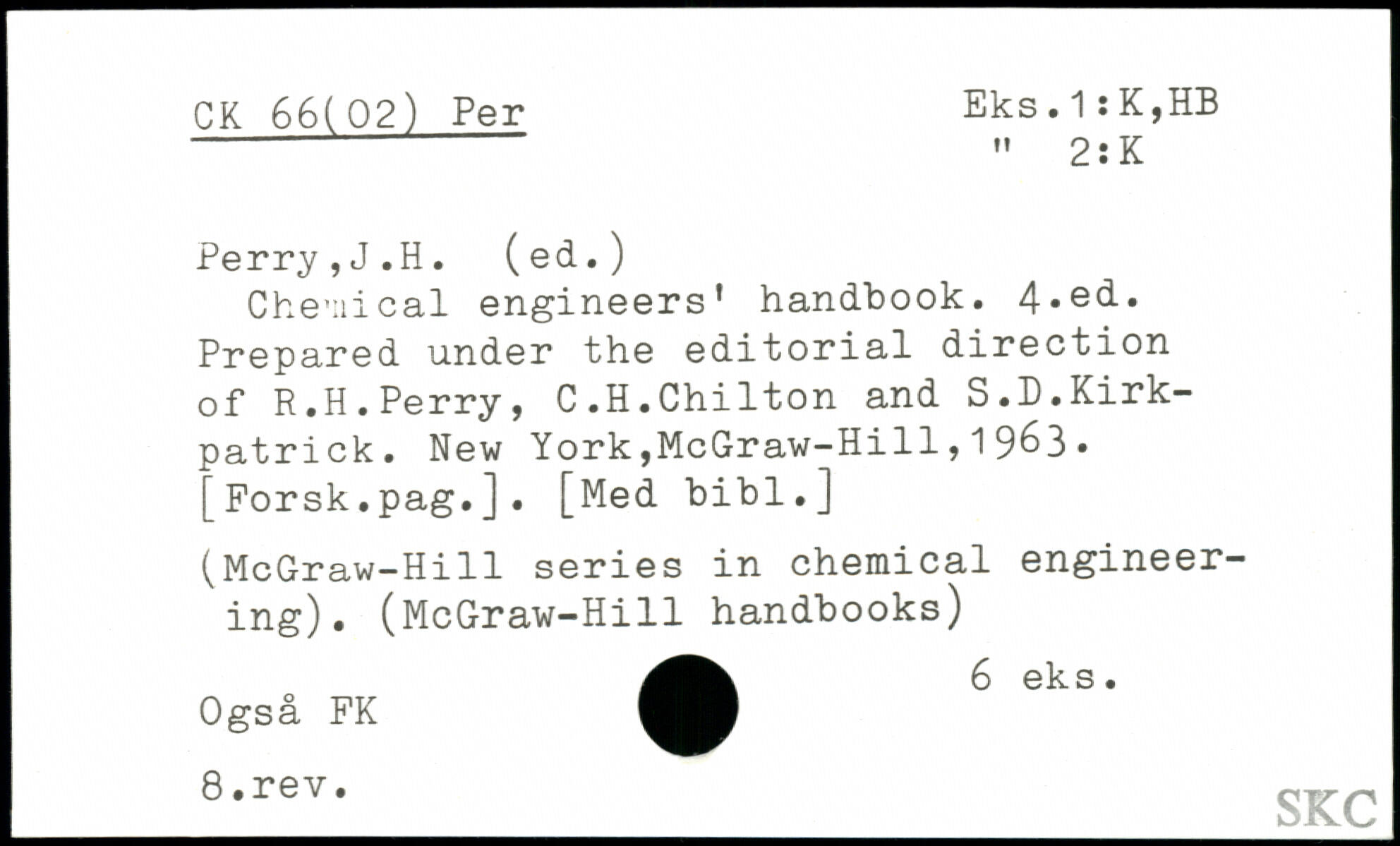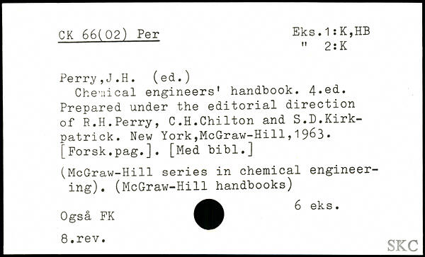 Chemical engineers' handbook. 4.e(i. Prepared under the editorial direction of R.H.Perry, C.H.Chilton and S.D.Kirkpatrick.
