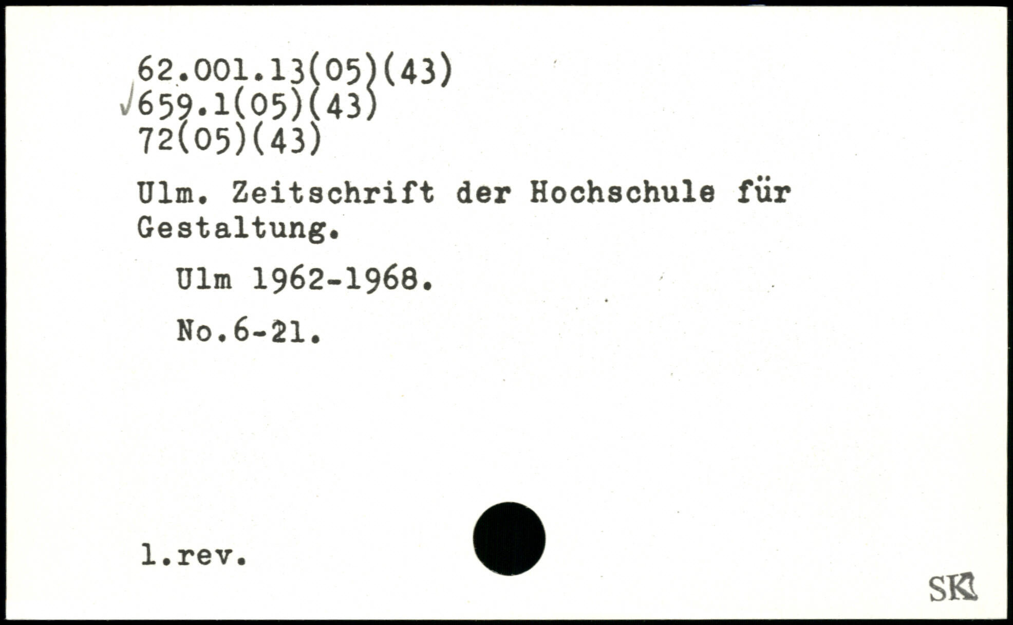 Ulm. Zeitschrift der Hochschule für Gestaltung. Ulm 1962-1968. No.6-21. l.rev. L.|lr SKI