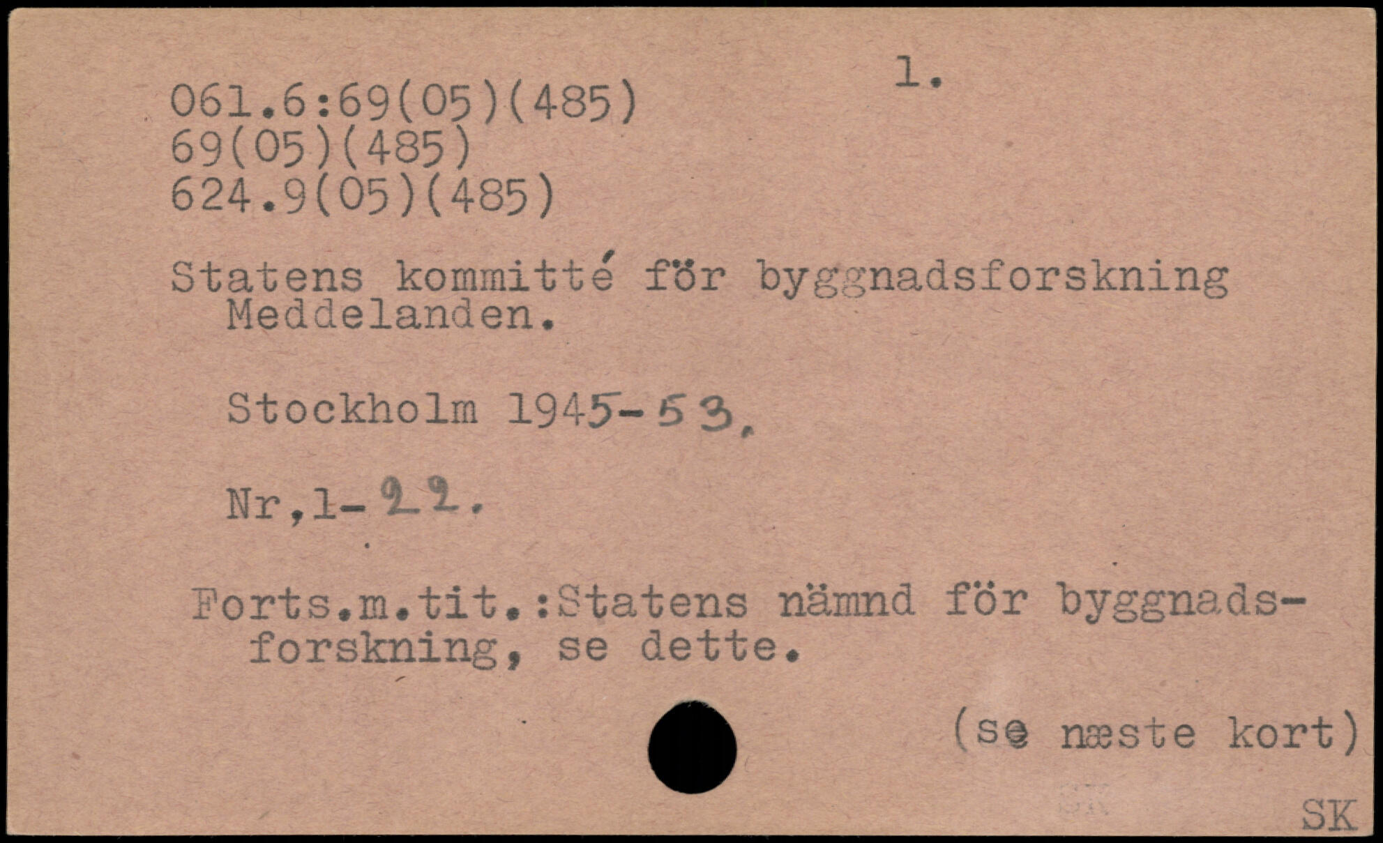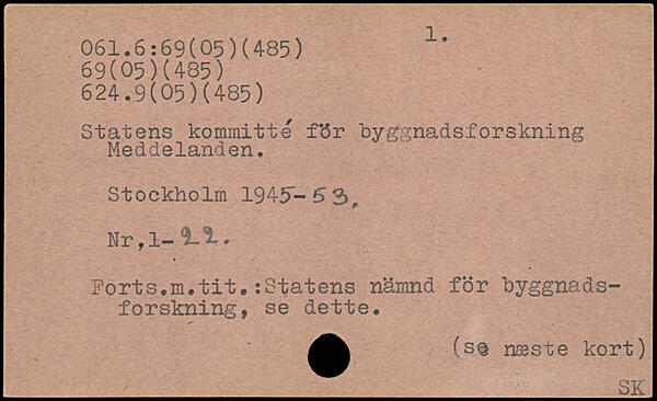 Statens kommitté f’dr byggnadsforskning Meddelanden. Stockholm 194-5"- 5 3, Forts.m.tit.:Statens nämnd för byggnads-forskning, se dette.