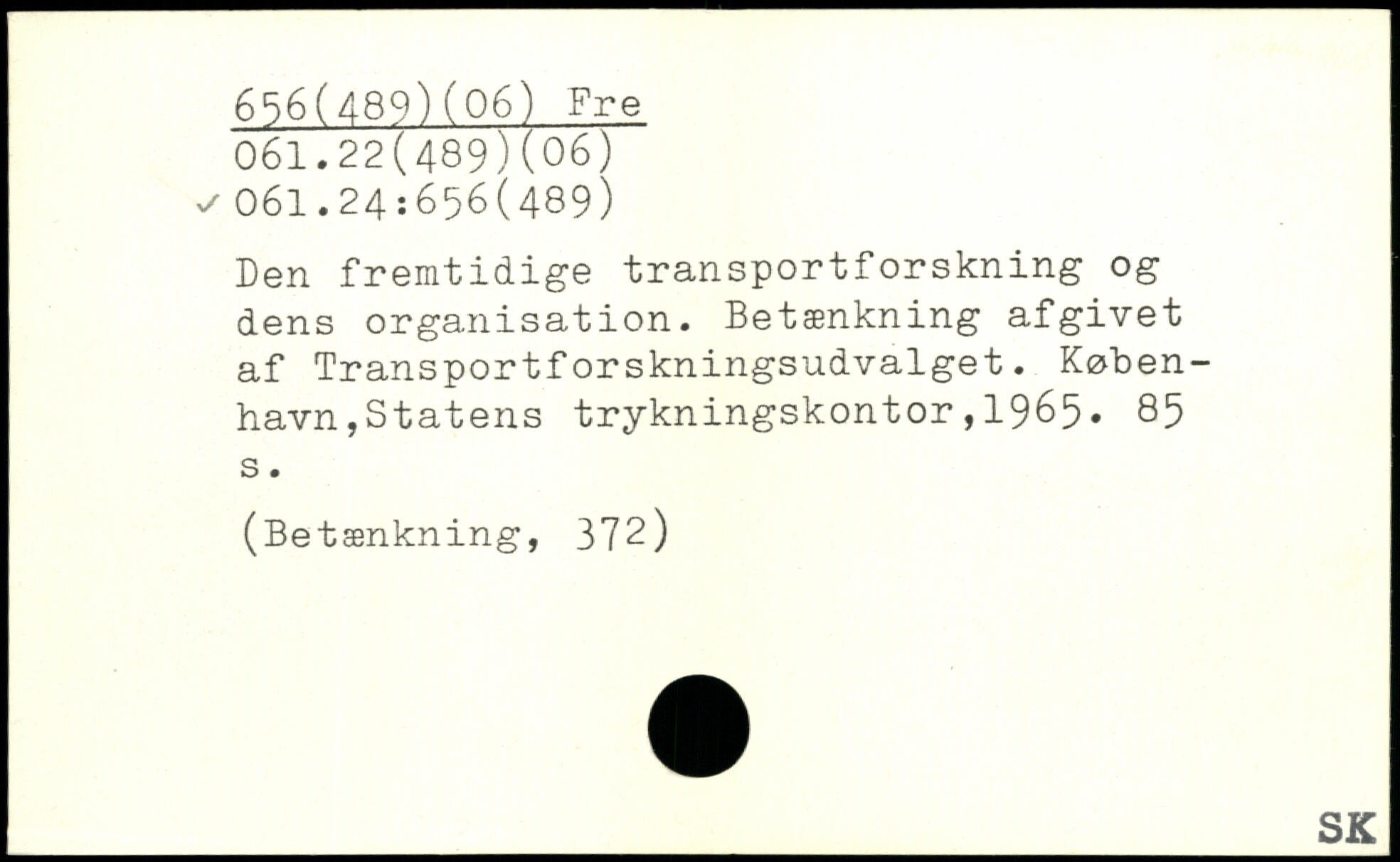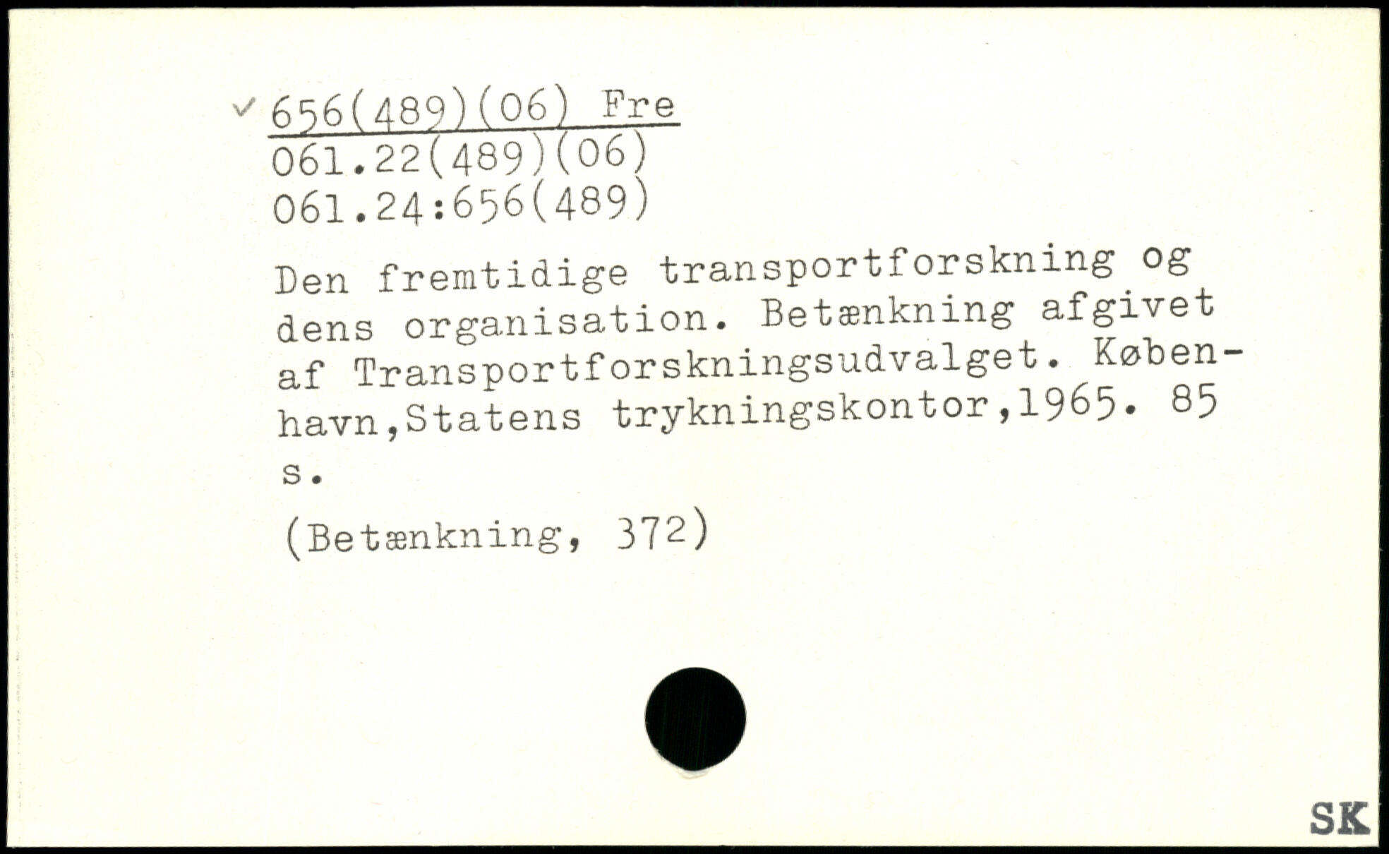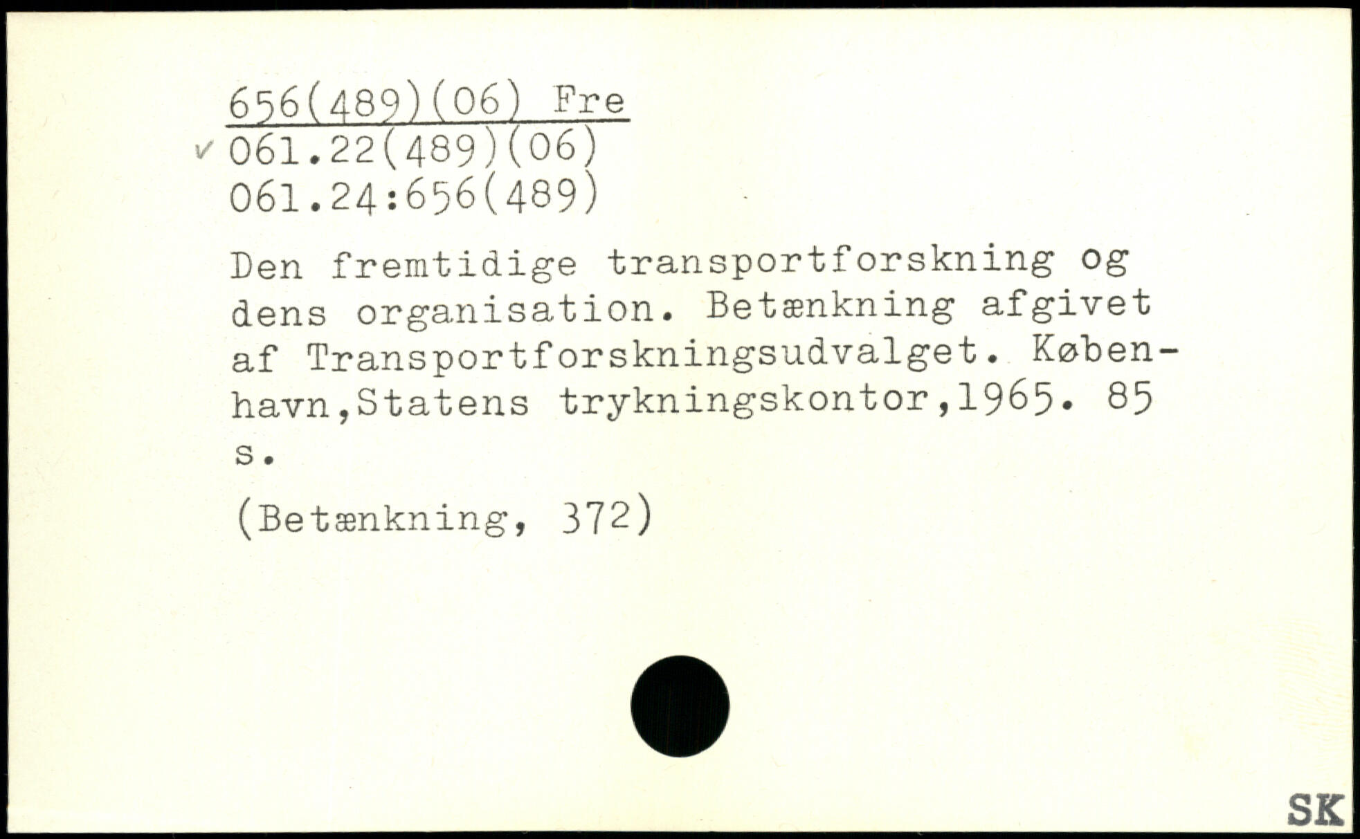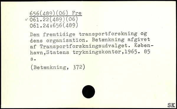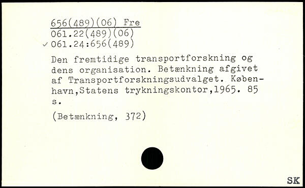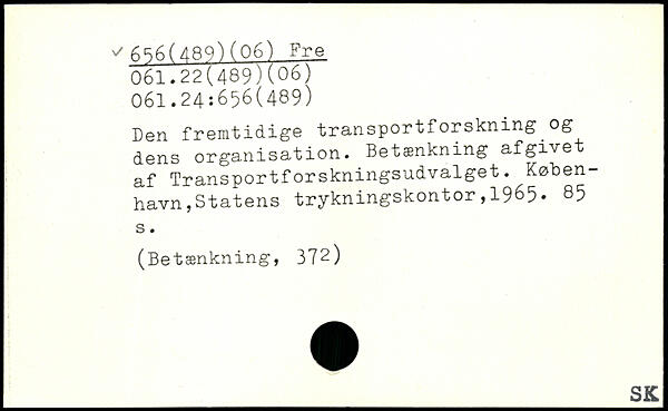 Den fremtidige transportforskning og dens organisation. Betænkning afgivet af Transportforskningsudvalget. Køben-havnjStatens trykningskontor,1965.