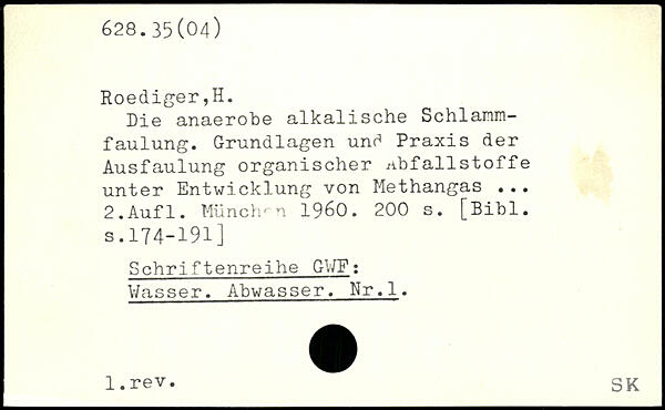Die anaerobe alkalische Schlammfaulung. Grundlagen unc> Praxis der Ausfaulung organischer Abfallstoffe unter Entwicklung von Methangas ...