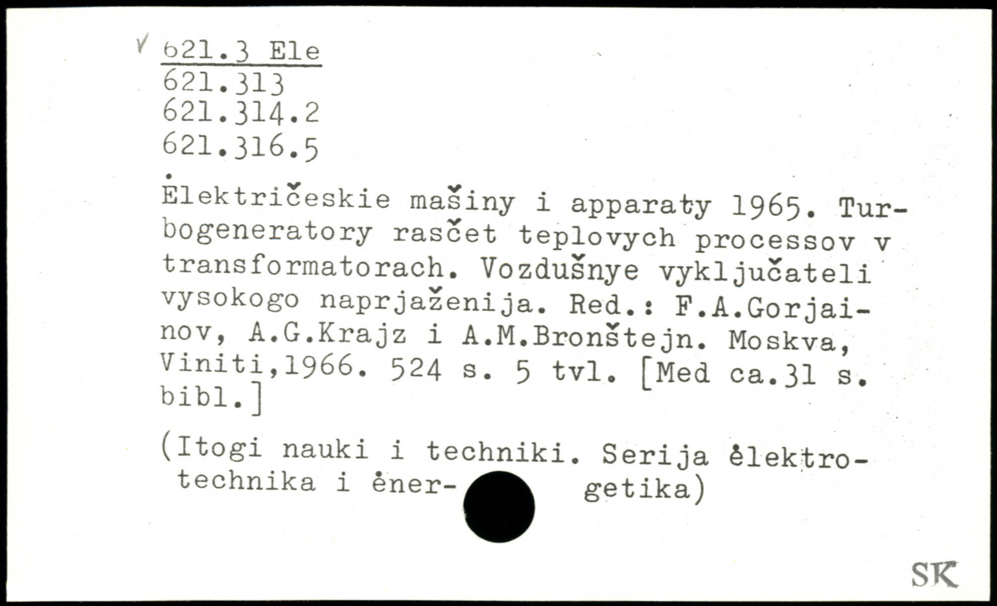 Elektriceskie masiny i apparaty 1965. Tur-Dogeneratory rascet teplovych processov v transformatorach. Vozdusnye vykljucateli vysokogo naprjazenija. Red.: F.A.Gorjai-nov, A.G.Krajz i A.M.Bronstejn.