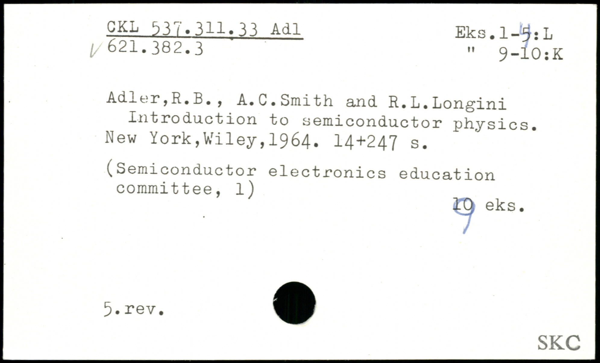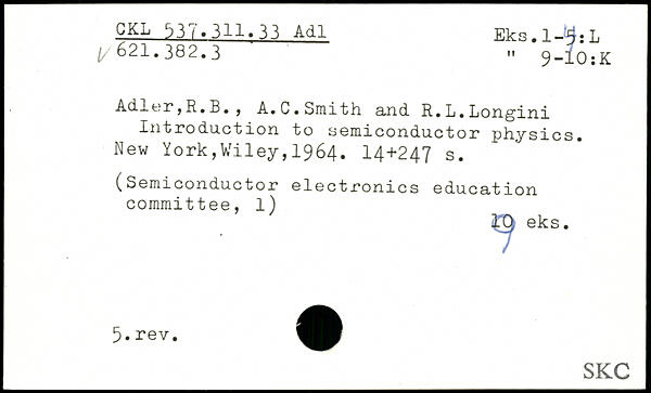 Adier,R.B. , A. C. Smith and. R. L. Longini Xn 11.0 duct ion to semiconductor physics.
