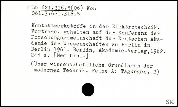 Kontaktwerkstoffe in der Elektrotechnik. Vortrage, gehalten auf der Konferenz der Forschungsgemeinschaft der Deutschen Akademie der Wissenschaften zu Berlin in
