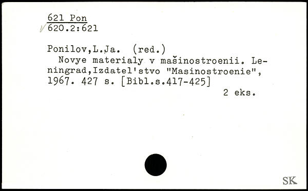 Ponilov,L.Ja. (red.) Novye materialy v masinostroenii. Leningrad ,Izdatel'stvo "Masinostroenie", 1967.