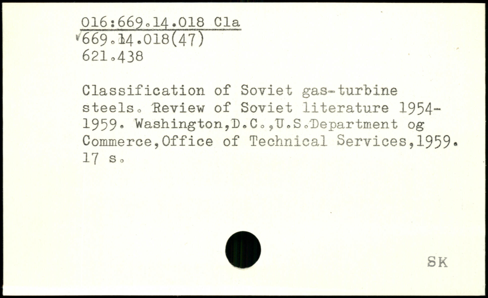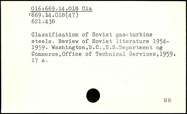 Classification of Soviet gas-turbine steelso Review of Soviet literature 1954-1959, Washington,D.Co,U.S
