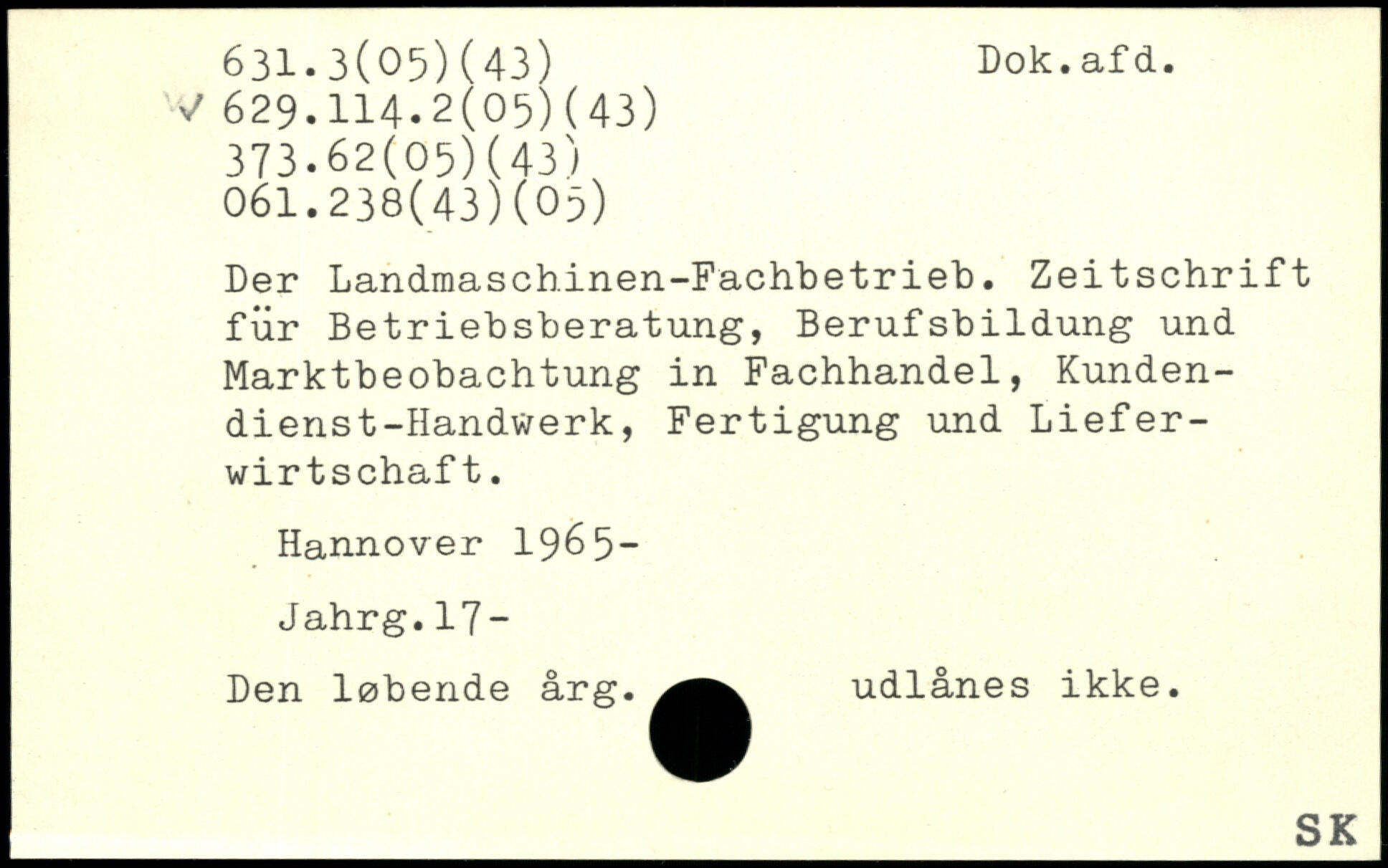Der Landroaschinen-Fachbetrieb. Zeitschrift für Betriebsberatung, Berufsbildung und Marktbeobachtung in Fachhandel, Kundendienst-Handwerk, Fertigung und Lieferwirtschaft. Hannover 19&5- Jahrg.17- Den løbende årg. udlånes ikke.
