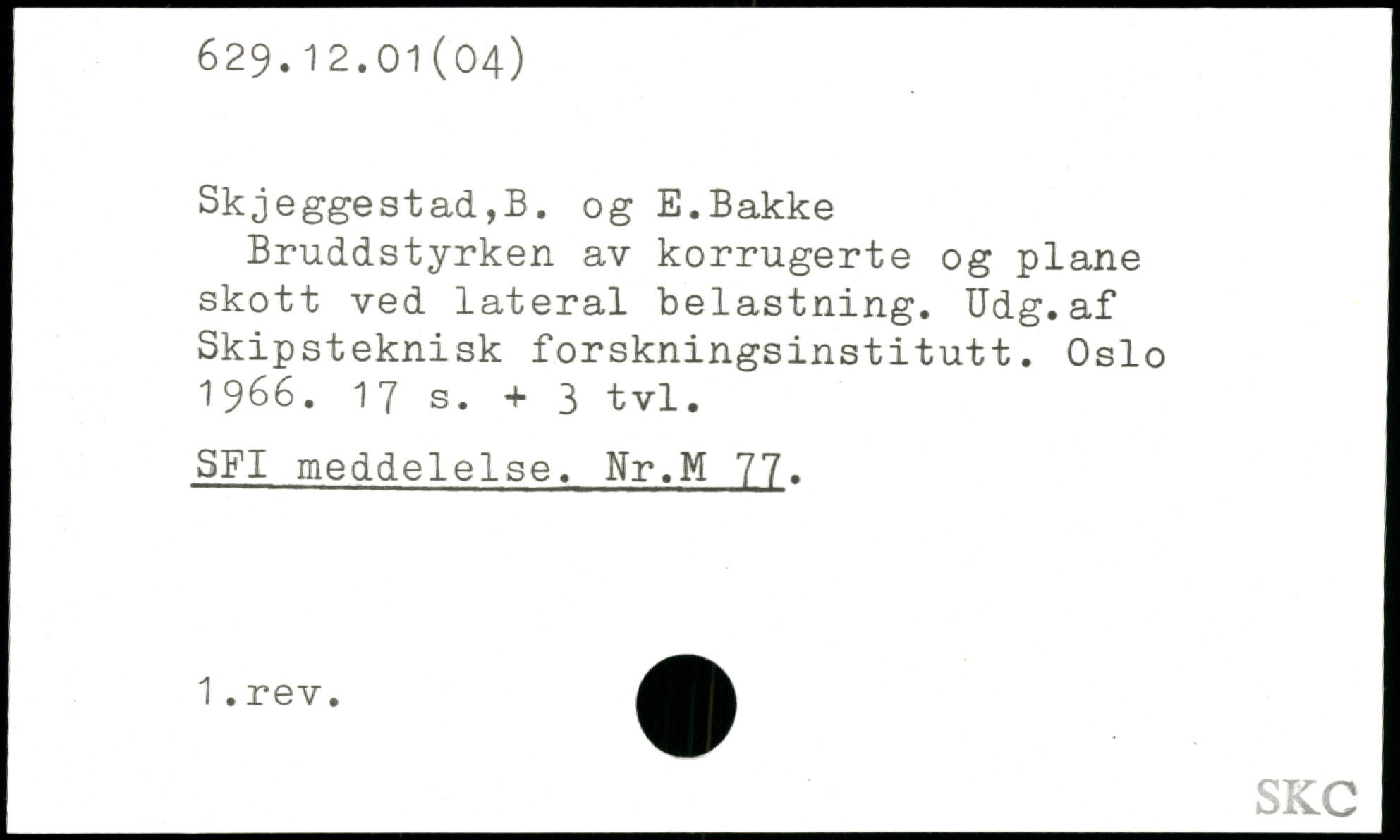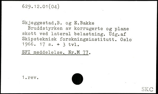 Bruddstyrken av korrugerte og plane skott ved lateral belastning. Udg.af Skipsteknisk forskningsinstitutt. Oslo 1966.