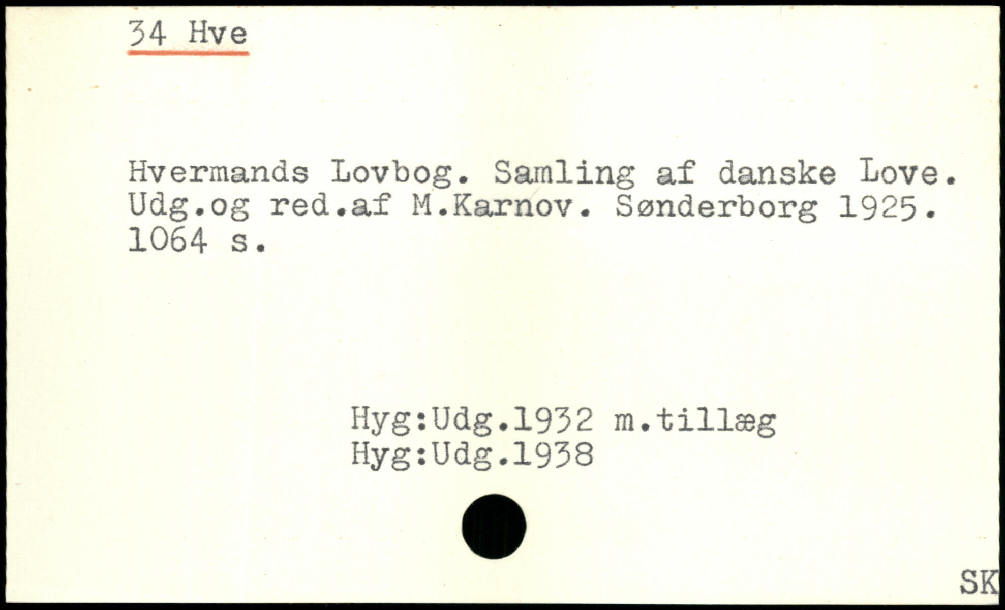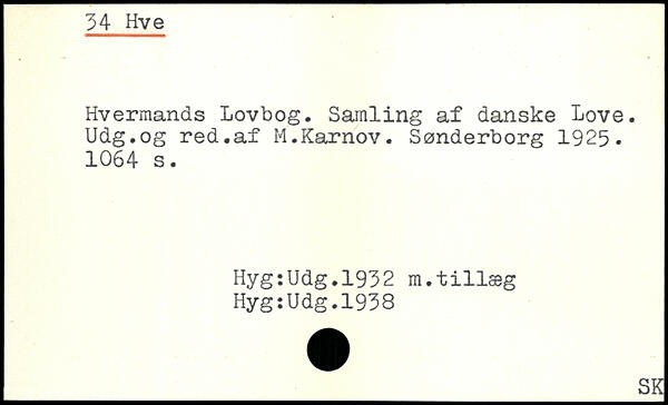 Hvermands Lovbog. Samling af danske Love. Udg.og red.af M.Karnov. Sønderborg 1925.